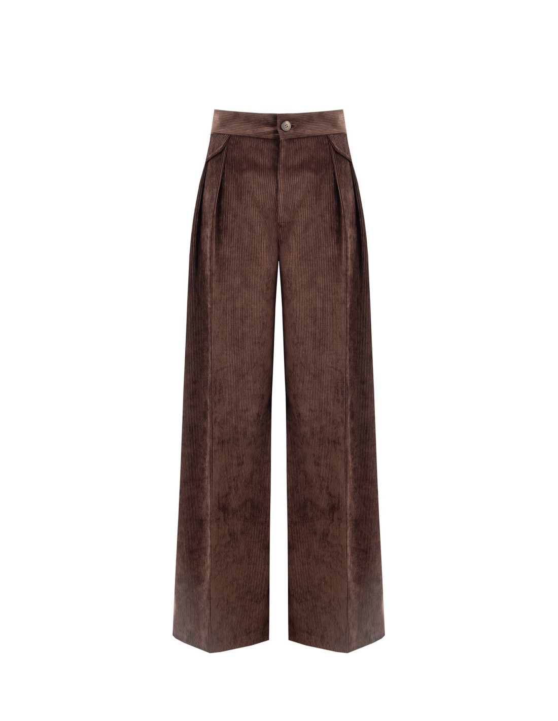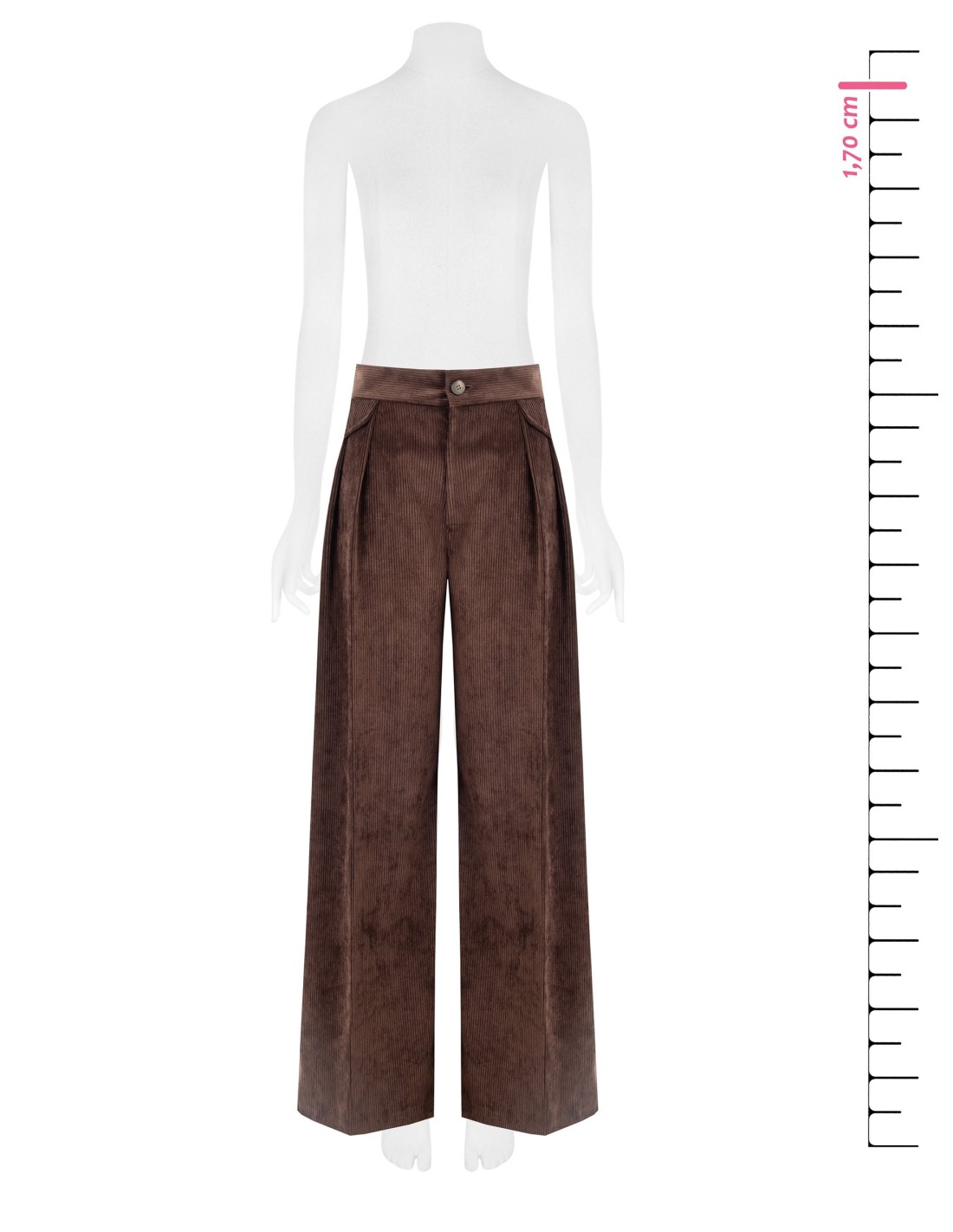 Rinascimento assina uma peça ampla e fluida com corte palazzo que alonga a silhueta. Confeccionada em veludo cotelê macio e estruturado, envolve com conforto. Cintura modelada com duas pinças e fecho de correr com botão para um acabamento limpo. Perfeita do escritório ao aperitivo, combina com blazer ou malhas suaves.