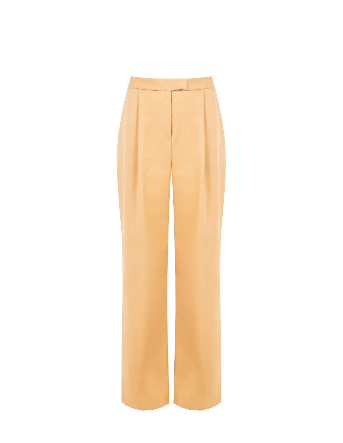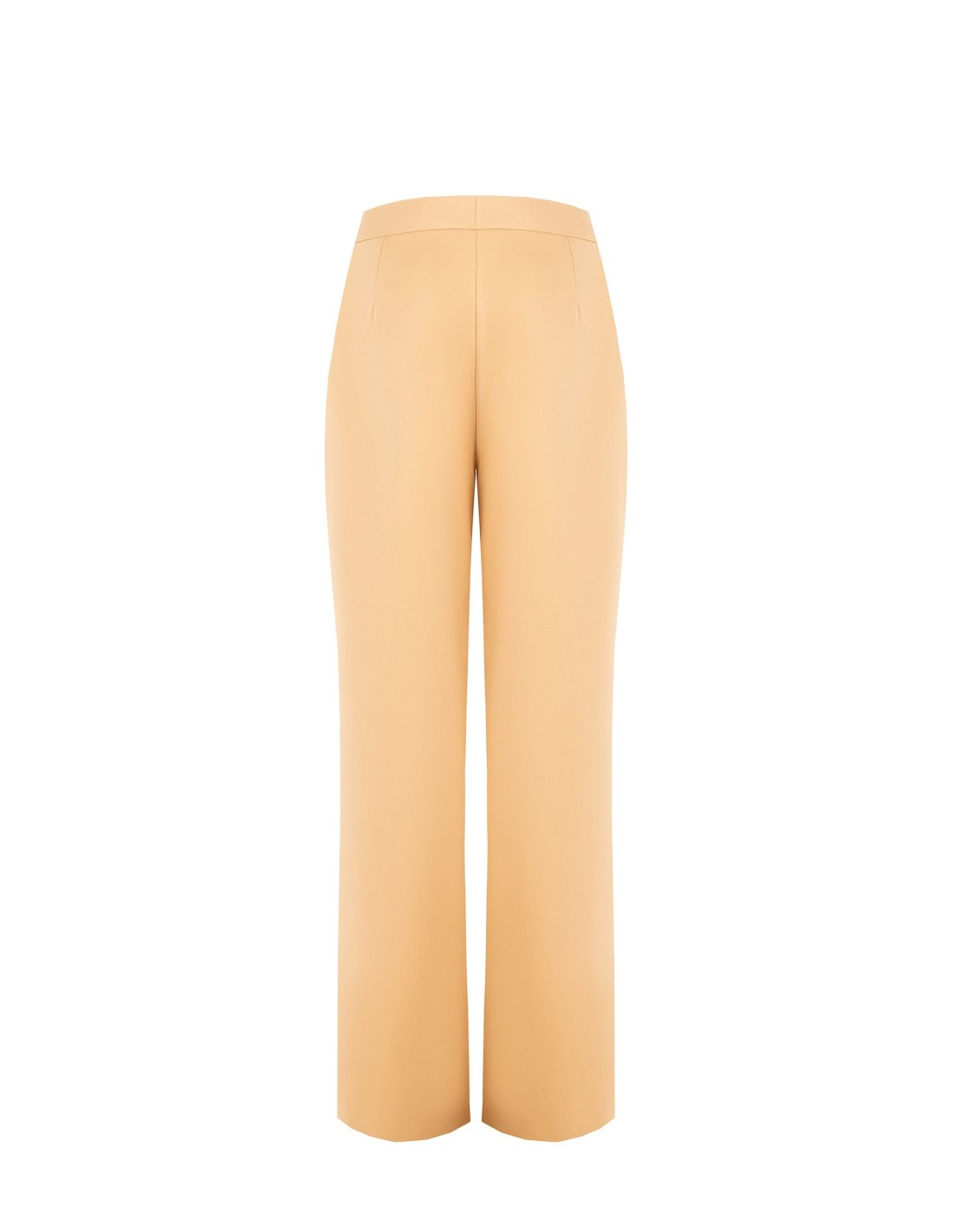Calças compridas de perna direita, corte descontraído que emagrece. Tecido fluido de poli-viscose com um toque suave, agradável à pele. Pregas à frente e fecho coberto definem a cintura; bolsos laterais para maior praticidade. Perfeitas do escritório ao aperitivo, proporcionam conforto e uma silhueta limpa e feminina.