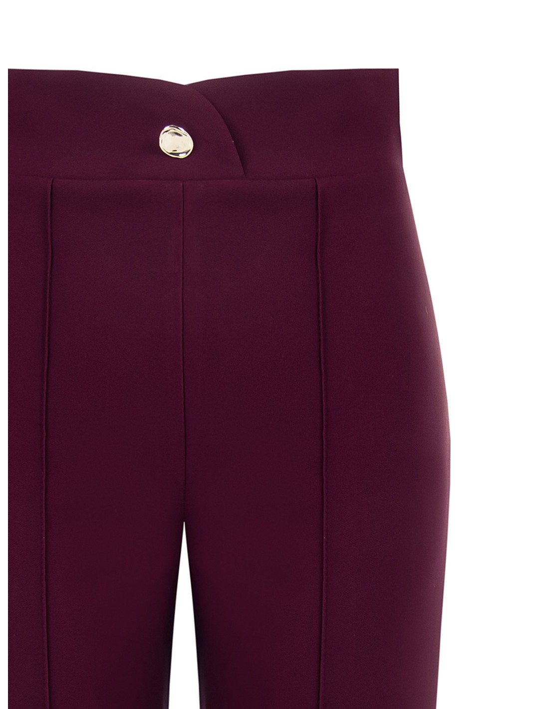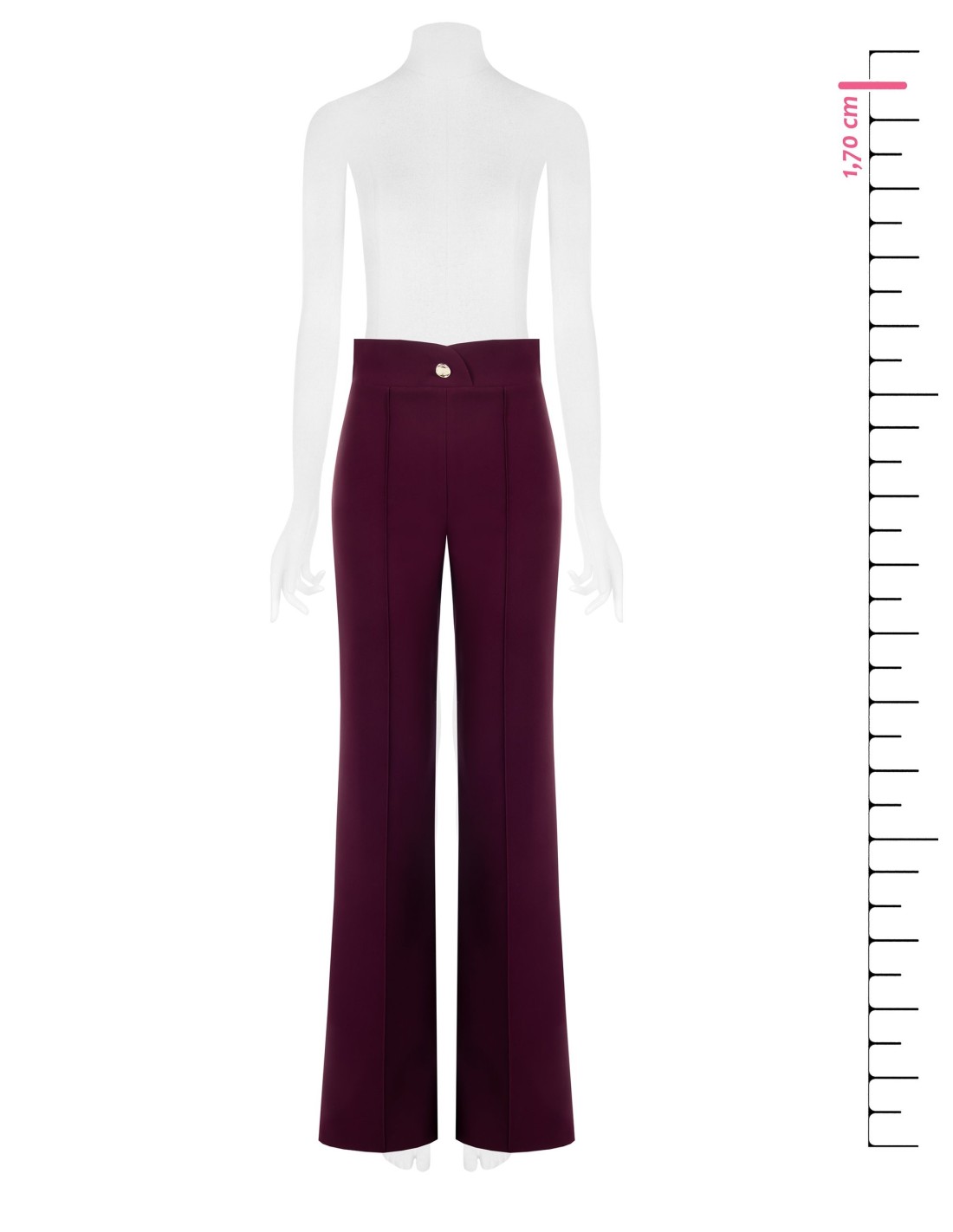 Calças de perna direita com cintura alta que adelgaçam a silhueta. Fabricadas em tecido bi-elástico suave para maior conforto e ajuste. Com um cinto em V com botão de jóias e pregas à frente. Versáteis do escritório ao cocktail, combinam com um blazer e saltos altos ou malhas suaves para o dia a dia.