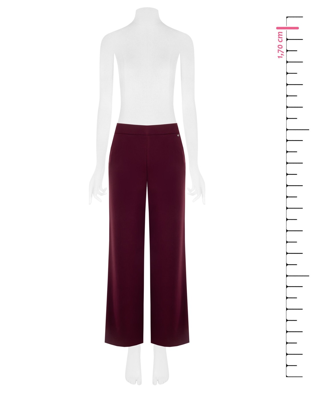 Calças de corte direito e perna macia que adelgaçam a silhueta. Tecido fluido de mistura de viscose com ligeira elasticidade para conforto durante todo o dia. Bolsos laterais invisíveis e fecho de correr oculto para uma linha limpa. Perfeitas para o escritório e para os compromissos pós-trabalho: versáteis com blusas ou malhas leves.