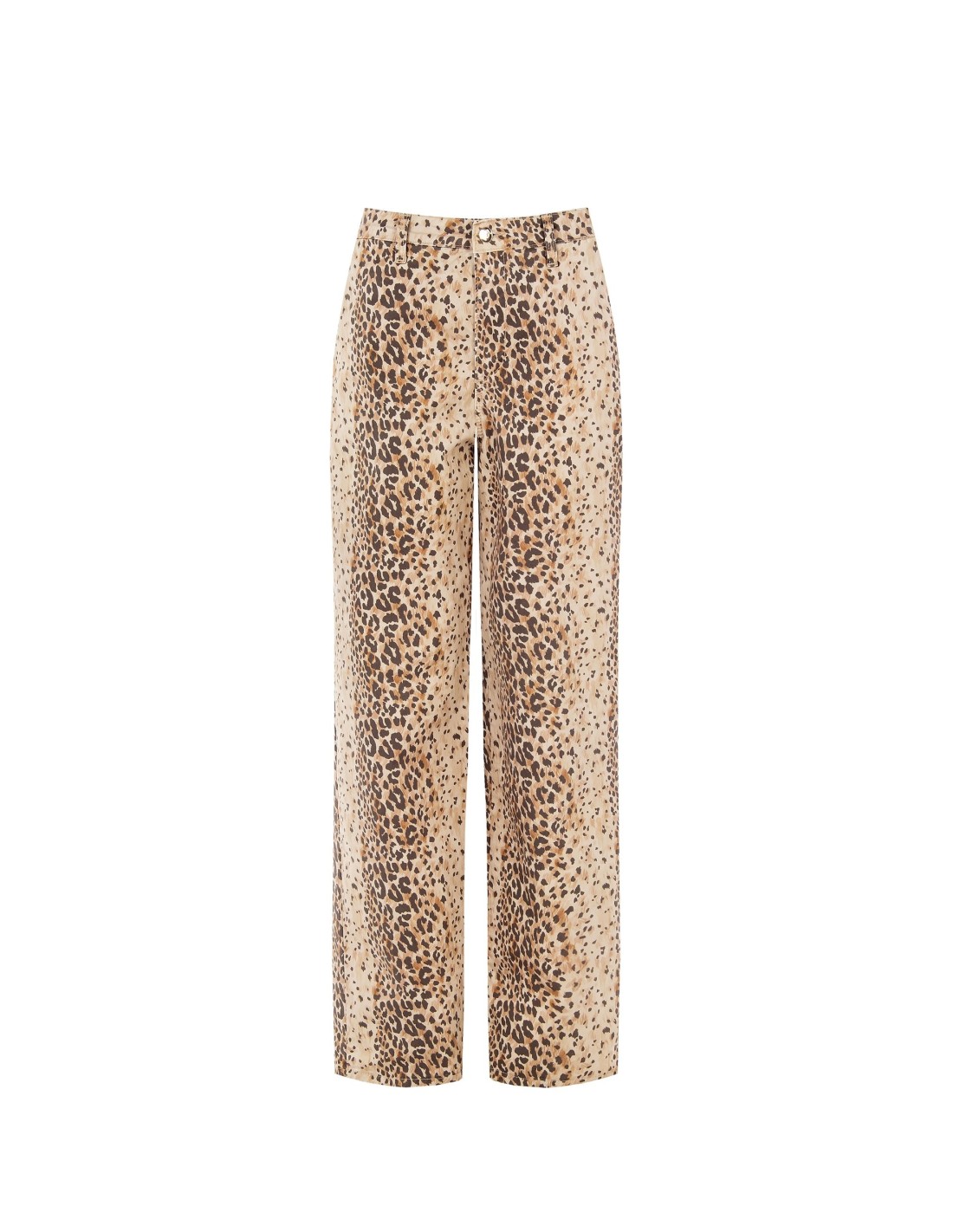 Linha fluida e corte regular para um modelo em algodão de toque macio, pensado para alongar a silhueta com conforto. A estampa animalier, o fecho com botão e fecho de correr e os bolsos traseiros tornam-no ideal do escritório ao dia a dia com um toque decidido.