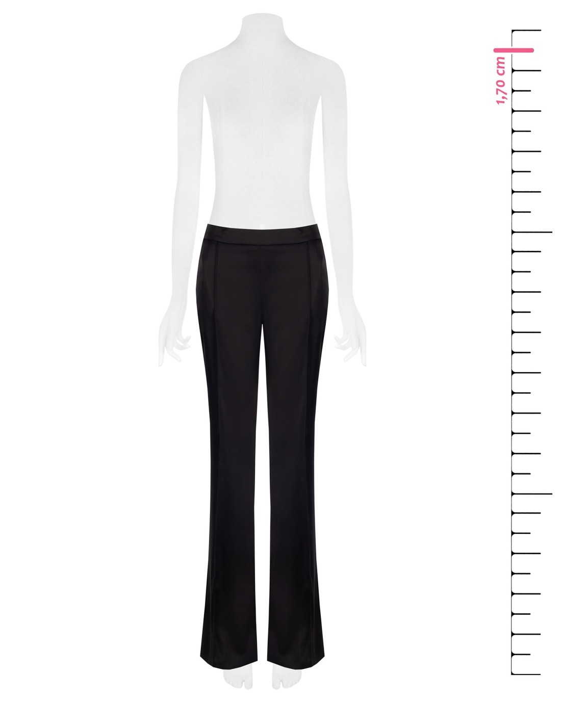 Rinascimento assina um modelo direito, com cintura regular, que alonga a silhueta com uma linha macia e fluida. O brilho sedoso do cetim acaricia a pele, enquanto o fecho lateral invisível e o vinco passado a ferro conferem limpeza e elegância. Perfeitos do escritório à soirée, com saltos ou sapatos rasos para um look versátil e sofisticado.