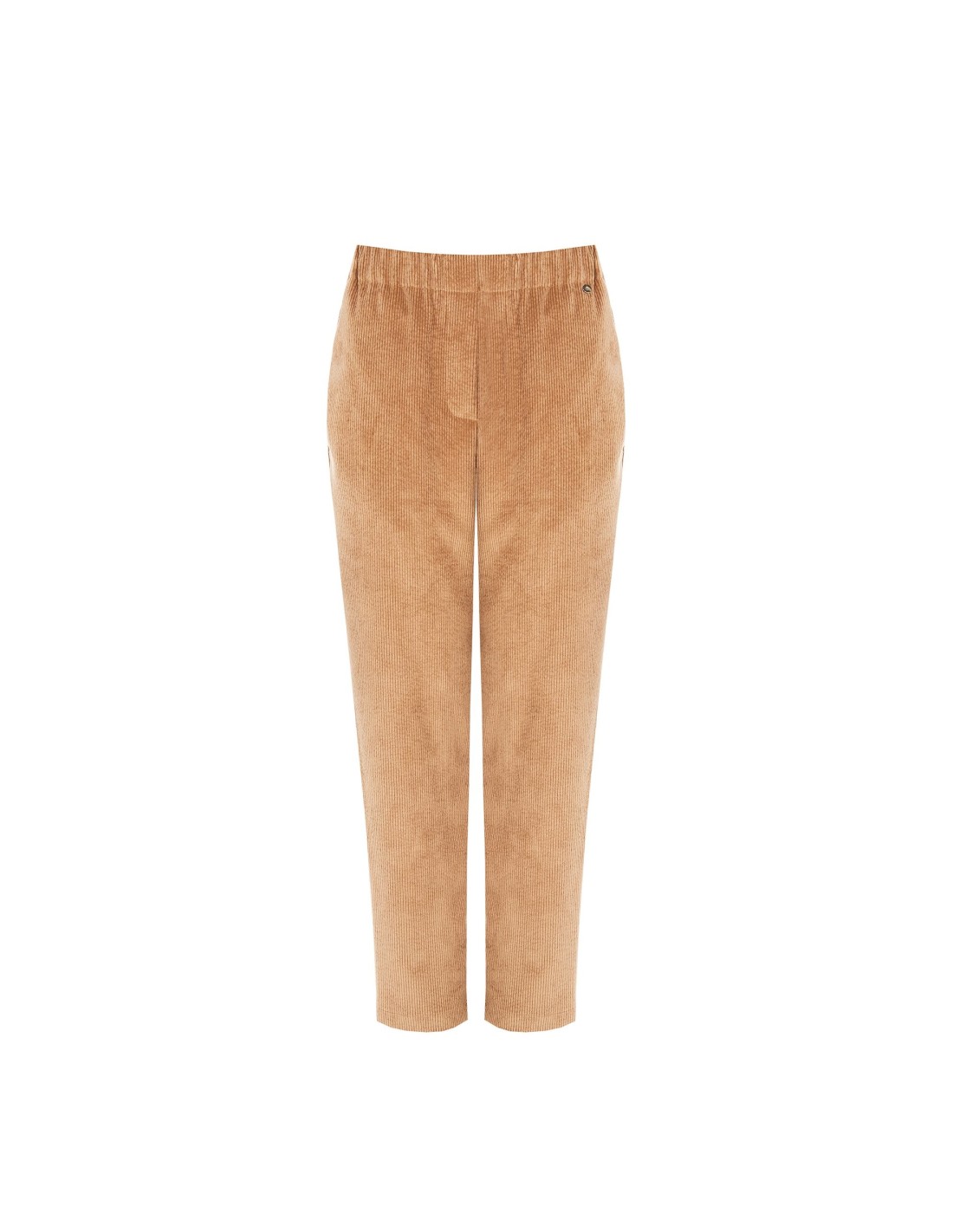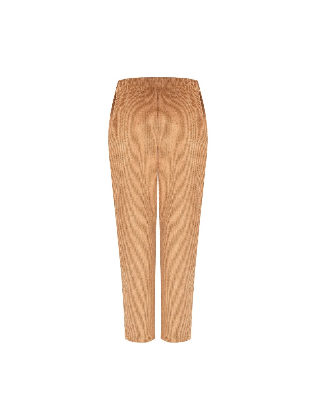 Corte direito com ajuste suave que alonga a perna. Em veludo cotelê com efeito ao toque, envolve com conforto graças ao elástico na cintura. Bolsos laterais funcionais e vinco frontal que define a silhueta. Perfeitos para o escritório com blazer, ideais também para o dia a dia com camisola e mocassins.