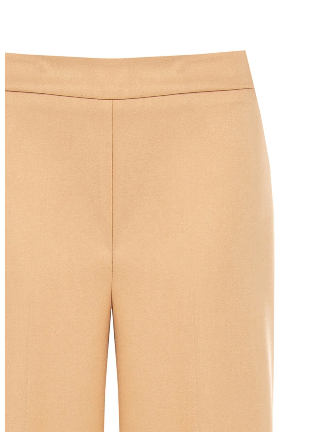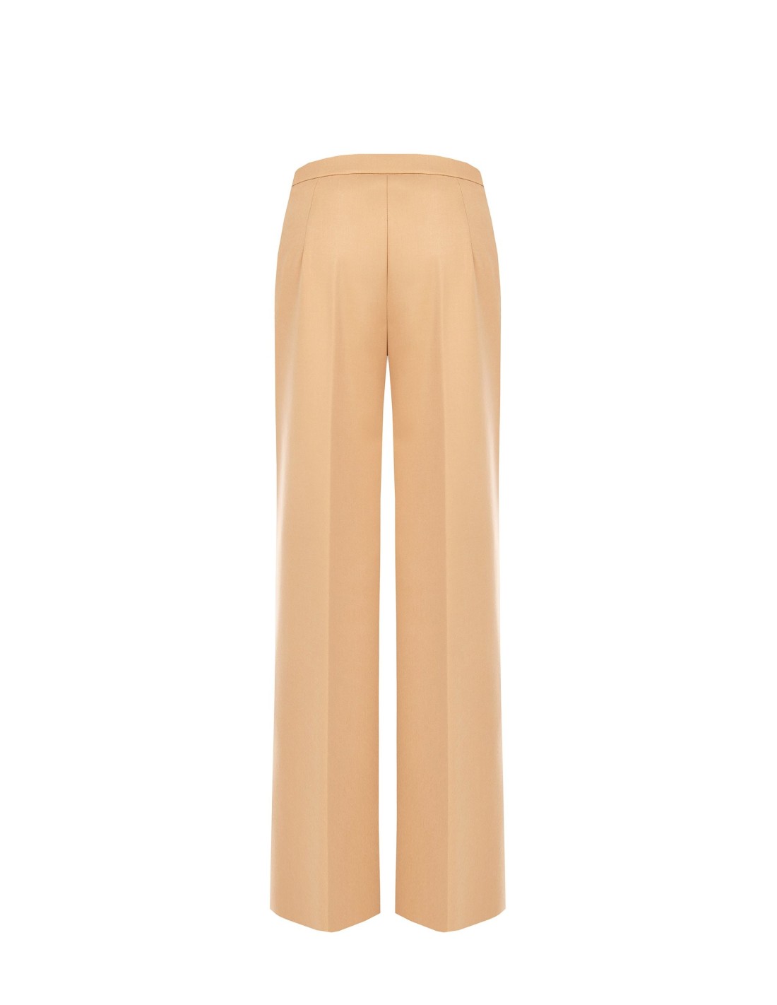 Silhueta ampla e fluida que alonga a figura. Tecido macio com toque ligeiramente sedoso e queda impecável, confortável durante todo o dia. Cintura limpa sem costuras visíveis, prega frontal passada a ferro para uma silhueta ordenada. Perfeito para o escritório e para looks do dia a dia sofisticados.