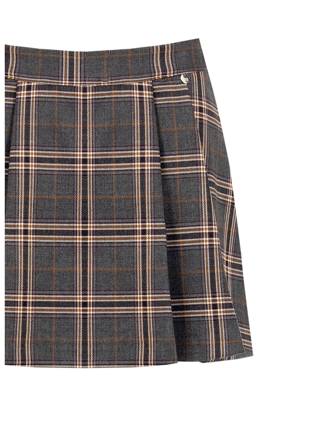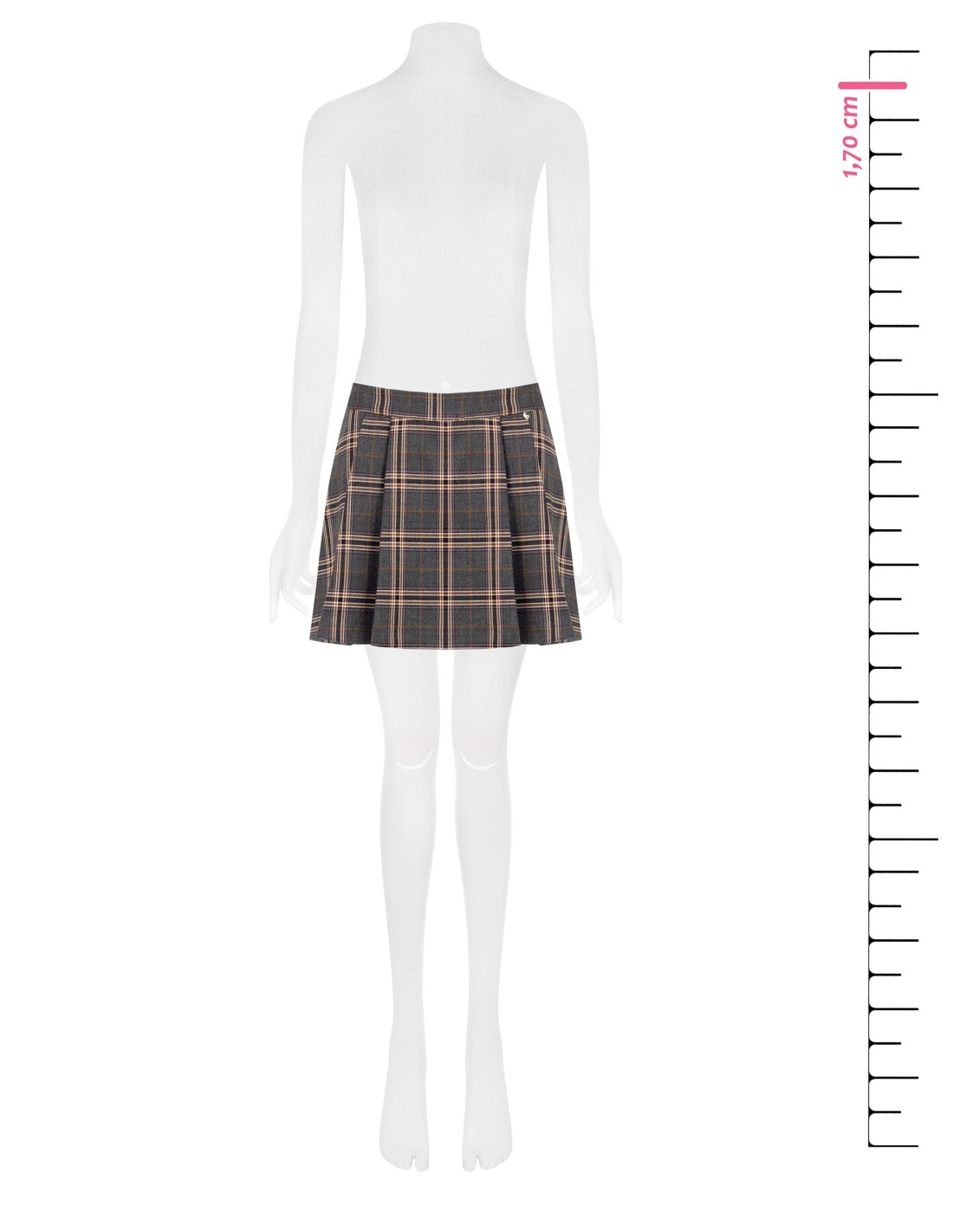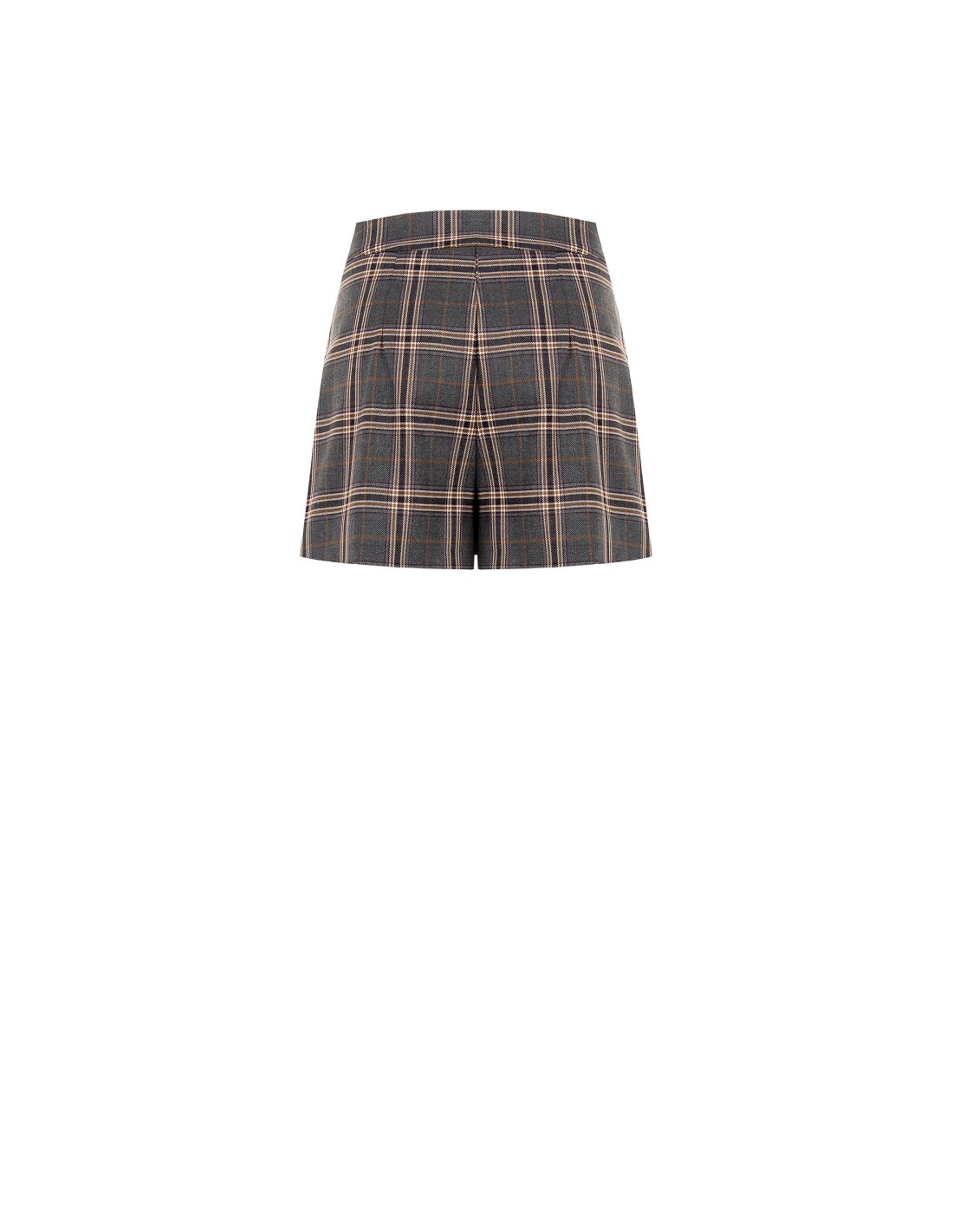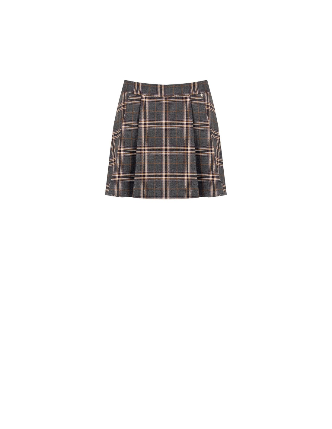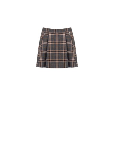 Minissaia trapezoidal, corte suave na cintura e movimento fluido graças às pregas. Tecido efeito lã com padrão xadrez escocês, confortável e estruturado. Detalhe metálico discreto e passadores na cintura para personalizar com cinto. Perfeita para o escritório com botas ou para o tempo livre com ténis.