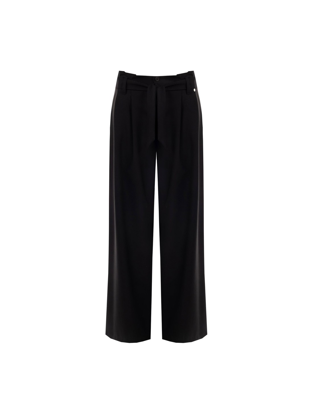 Rinascimento assina uma peça de vestuário de perna larga com um ajuste suave e fino. Tecido fluido com um toque sedoso para conforto quotidiano. Cós com laço automático e pregas à frente definem a silhueta. Perfeito desde o escritório até à hora do cocktail: versátil, elegante, fácil de combinar.