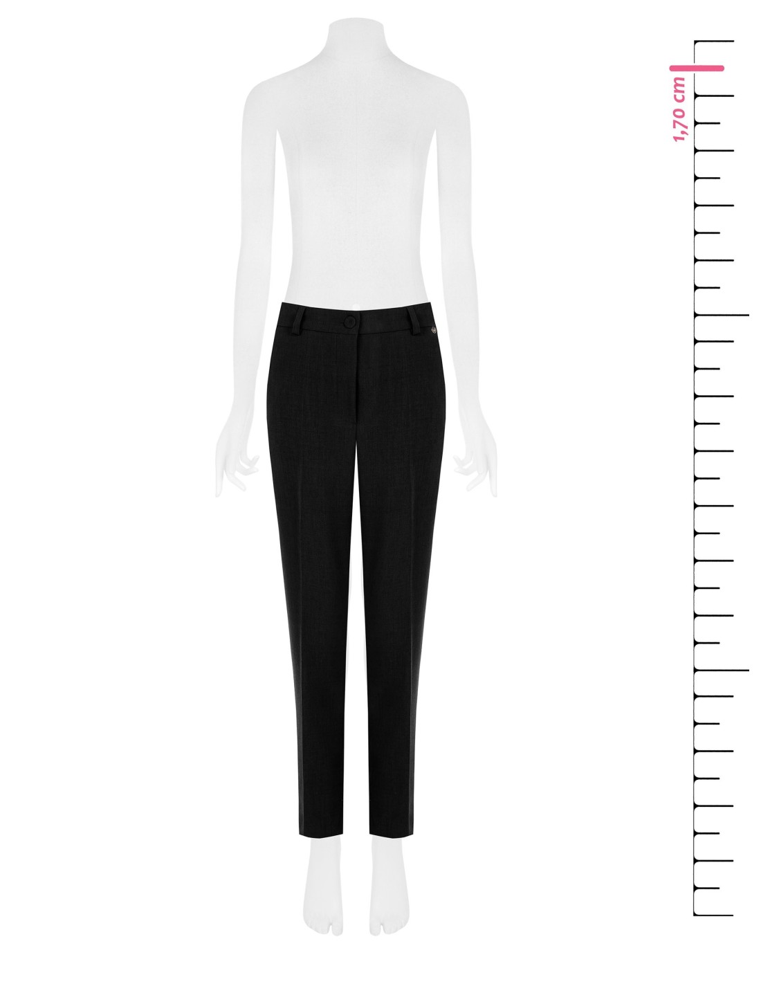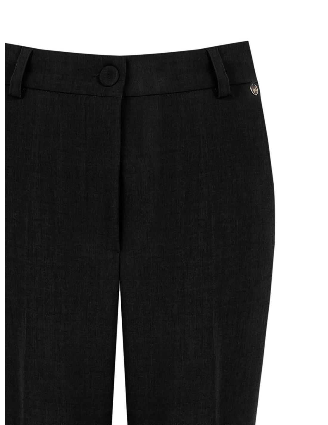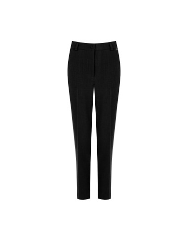 Silhueta direita com perna afunilada, cintura média e pregas elásticas para maior firmeza. Tecido leve de efeito mélange com um toque de elasticidade para conforto durante todo o dia. Fecho de botão coberto e bolsos de debrum. Perfeitas para o escritório e para looks quotidianos requintados. Rinascimento.