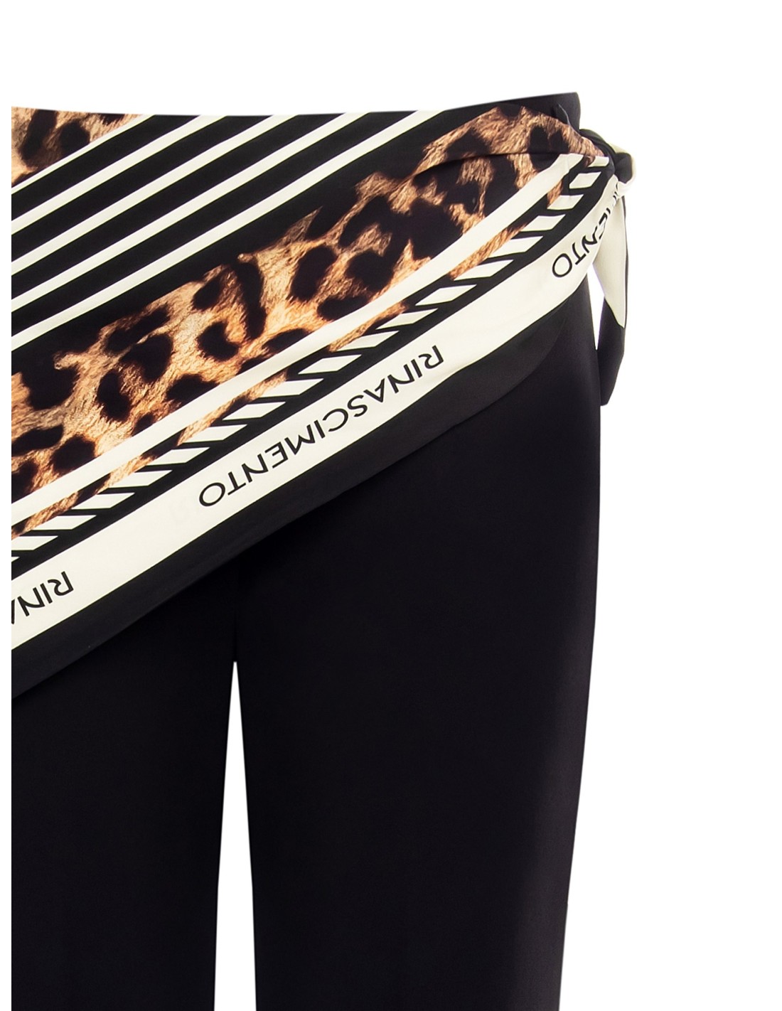 Assinado Rinascimento, este modelo com perna reta valoriza a silhueta com um corte suave mas definido em tecido técnico elástico. O lenço de cetim aplicado e que pode ser atado na lateral acrescenta movimento e carácter. Perfeito do escritório ao aperitivo, assegura conforto e versatilidade durante todo o dia.