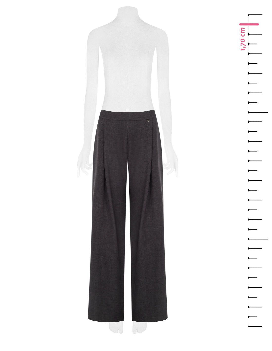 Rinascimento assina uma peça de corte amplo e fluido, com cintura regular que esguia a silhueta. Confeccionada em tecido macio e ligeiramente elástico, garante conforto durante todo o dia. Vinco passado a ferro e micro charm metálico valorizam a linha. Perfeita para o escritório e para noites chic.