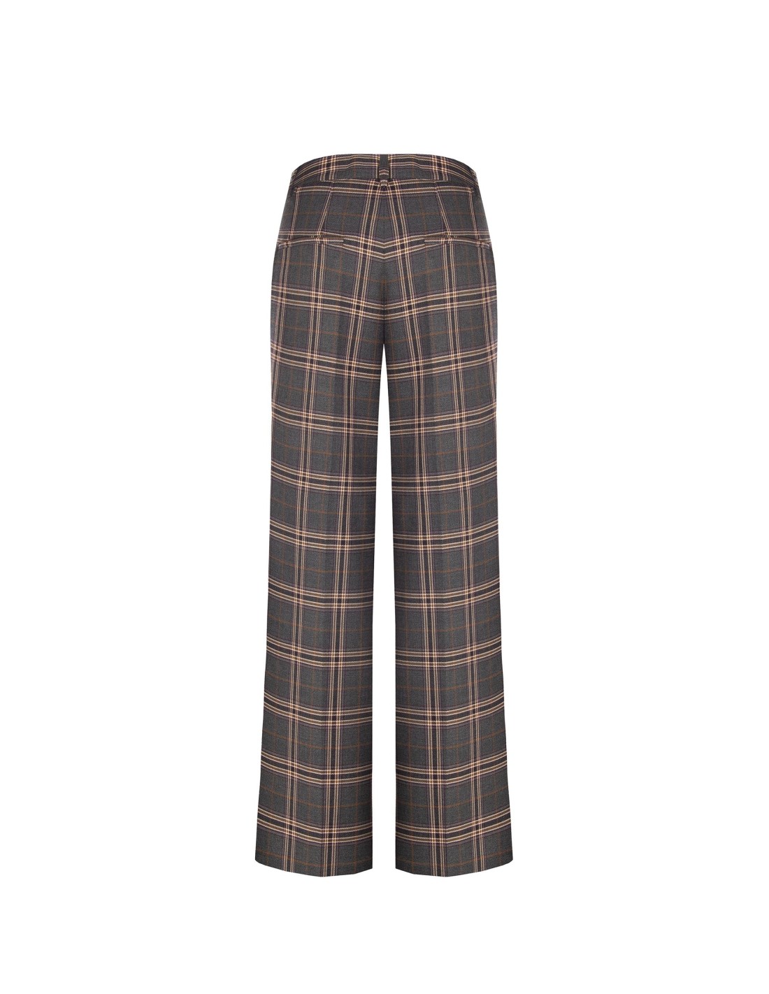 Corte reto suave que alonga, cintura regular. Tecido check com toque compacto e confortável, com percentagem de stretch para liberdade de movimentos. Prega vincada e botão forrado definem o conjunto. Perfeito para o escritório e para o tempo livre, combina com blazers ou malhas para um look cuidado e versátil.