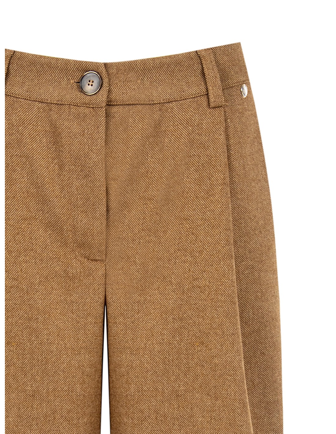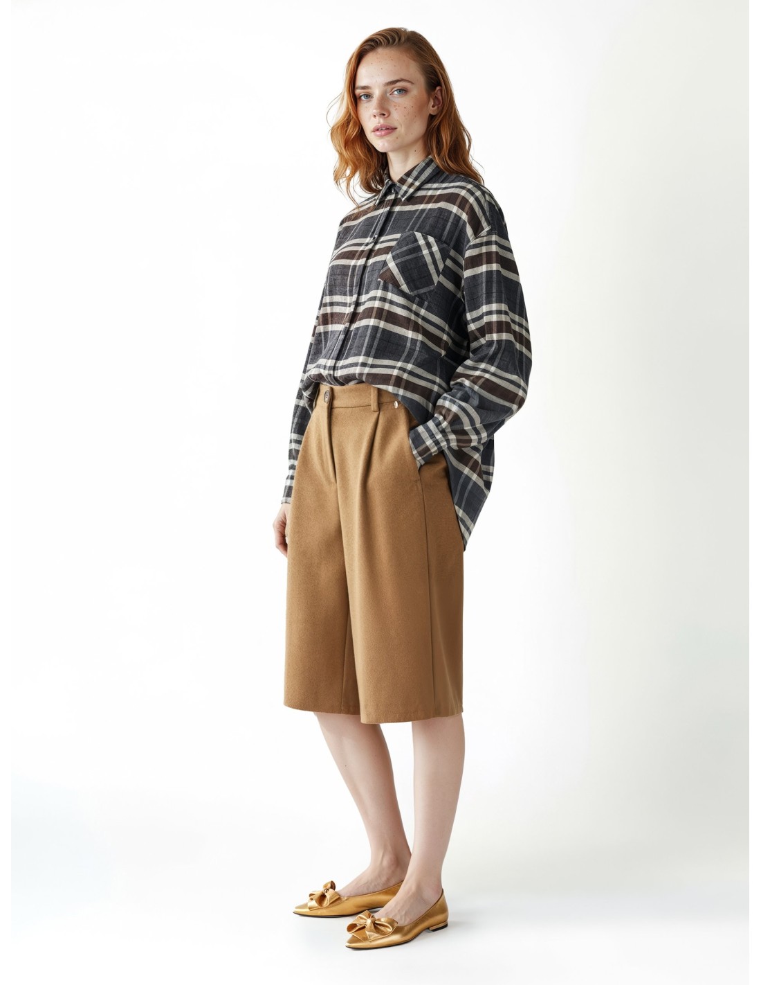 Bermuda de corte macio e cintura média, silhueta reta que alonga a panturrilha. Tecido com efeito twill e toque macio e confortável. Prega passada frontal e botão à vista valorizam a linha. Versátil para o escritório com blazer, perfeita para o dia a dia com camisola e botins. Rinascimento.