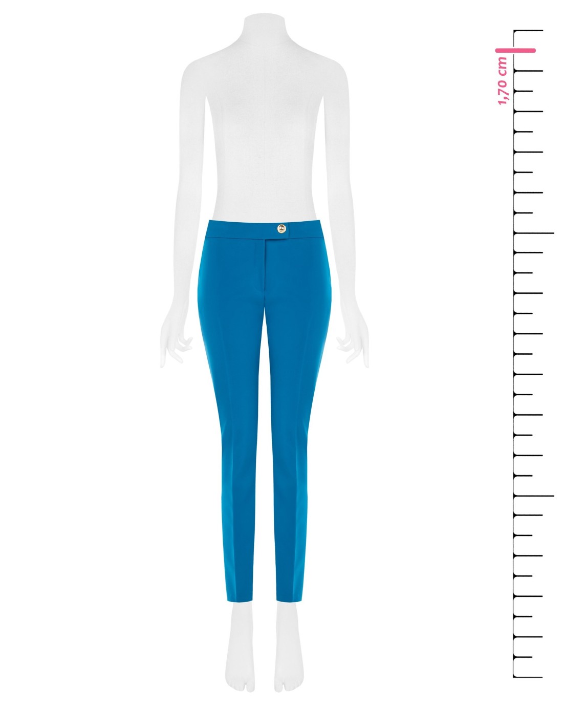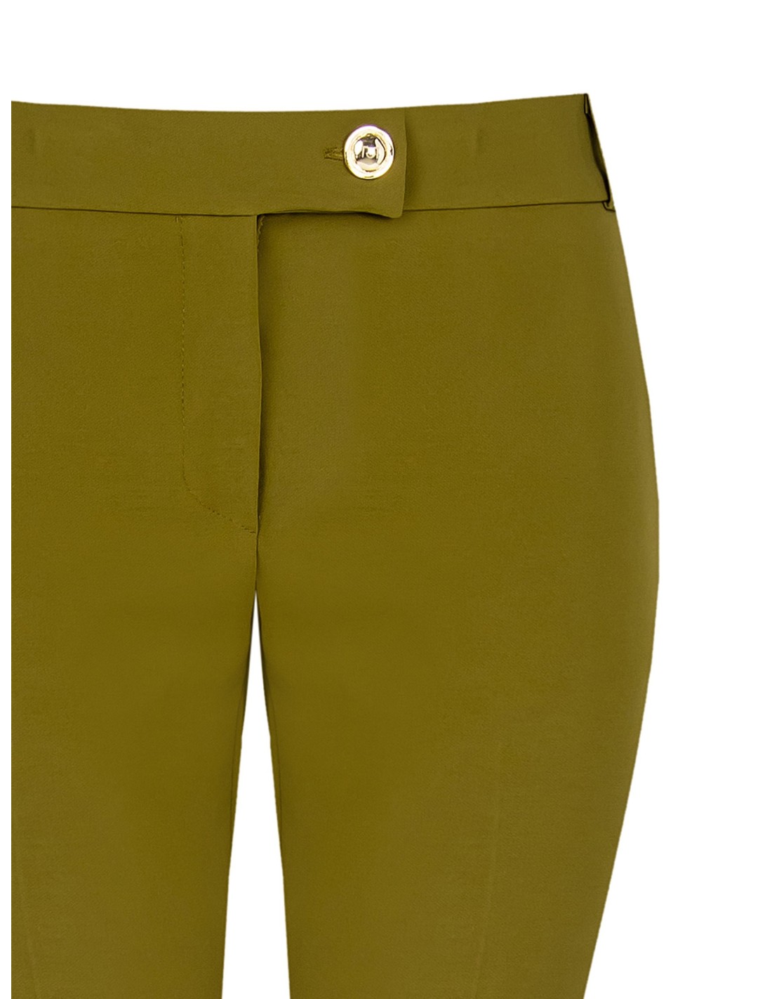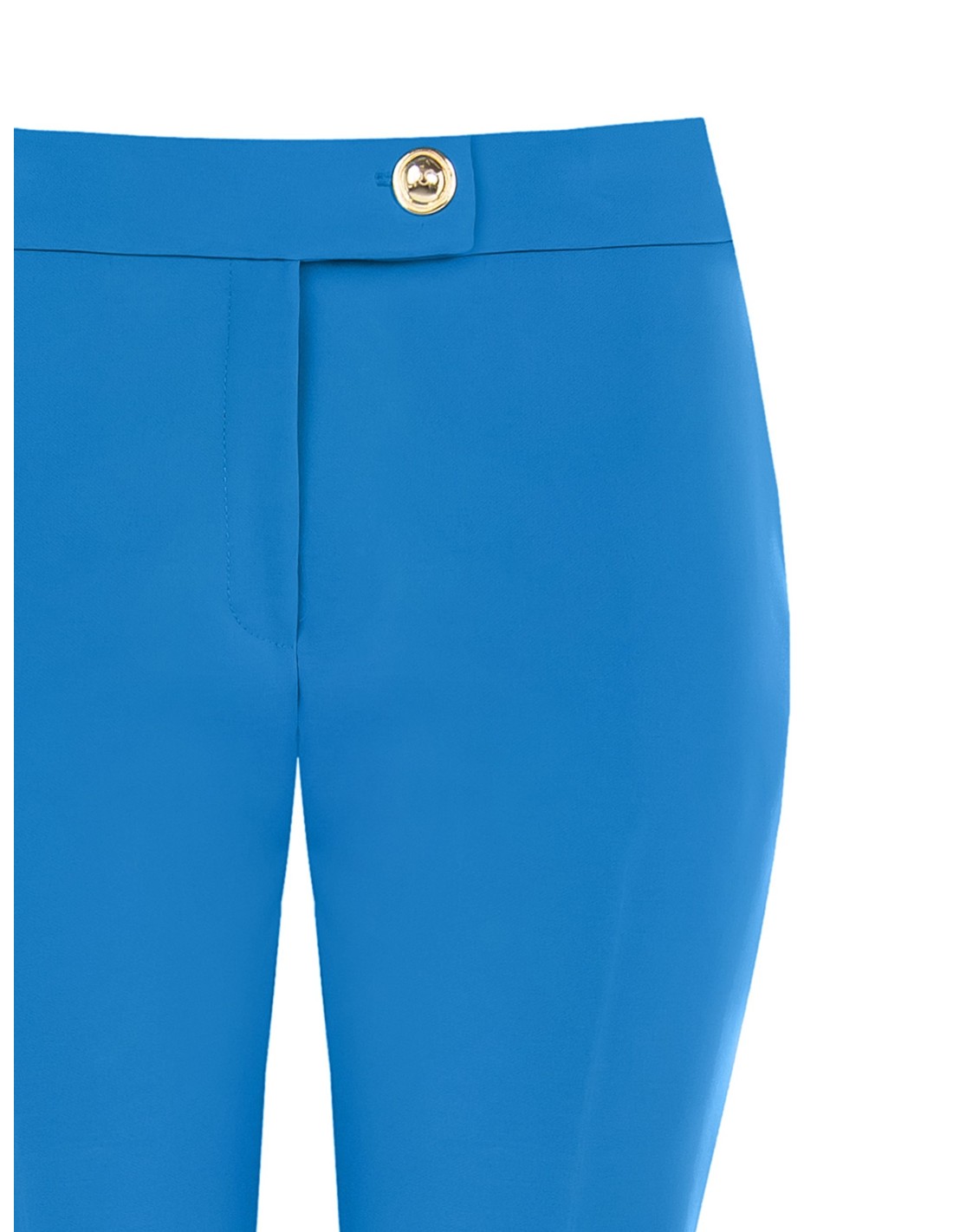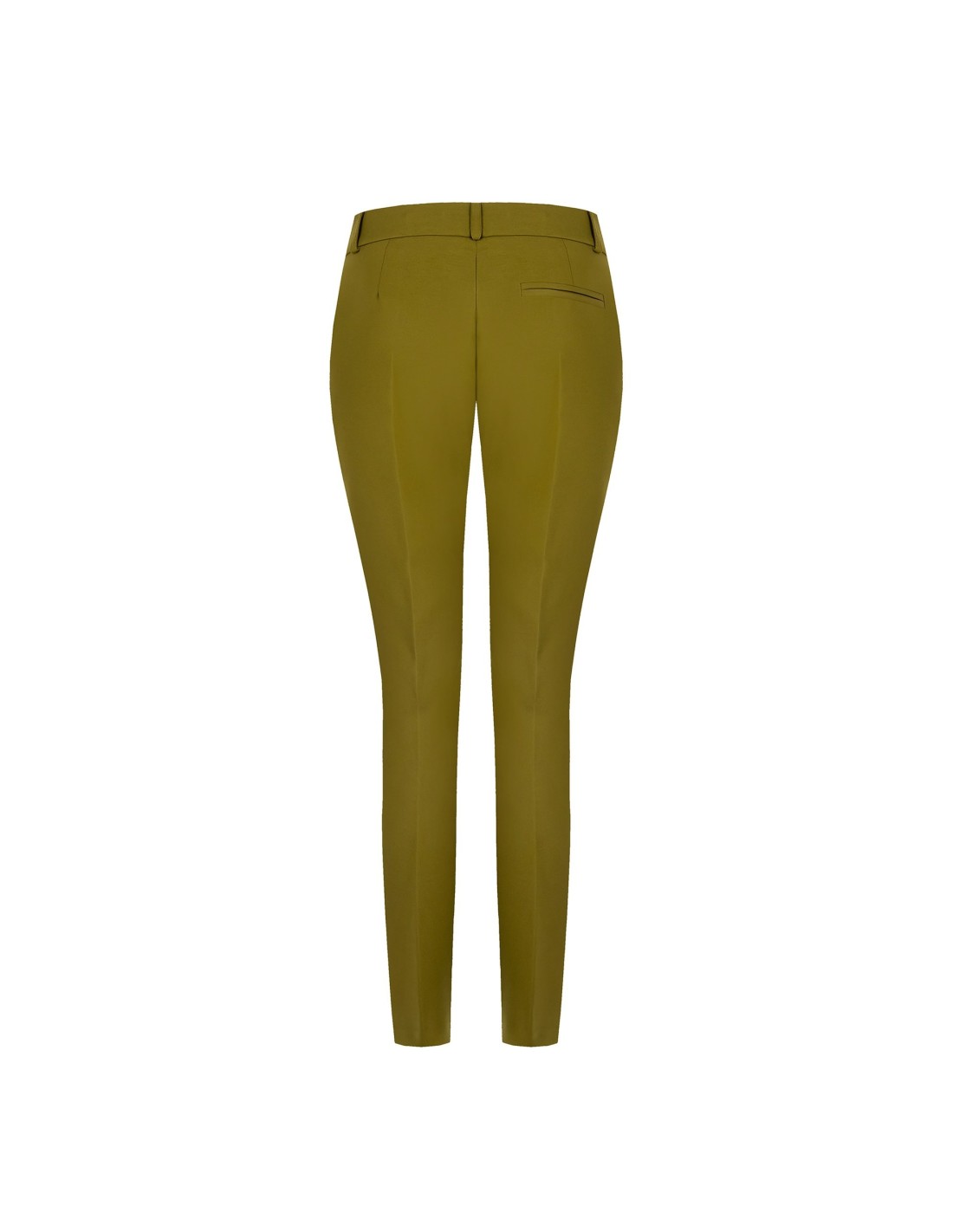 Silhueta afunilada com cintura regular, corte justo que alonga. Confeccionados em tecido técnico elástico, acompanham os movimentos e mantêm a forma. Vinco frontal marcado e botão joia na cintura para um toque distintivo; bolso de embutir na parte traseira. Perfeitos do escritório ao aperitivo, com saltos ou mocassins.
