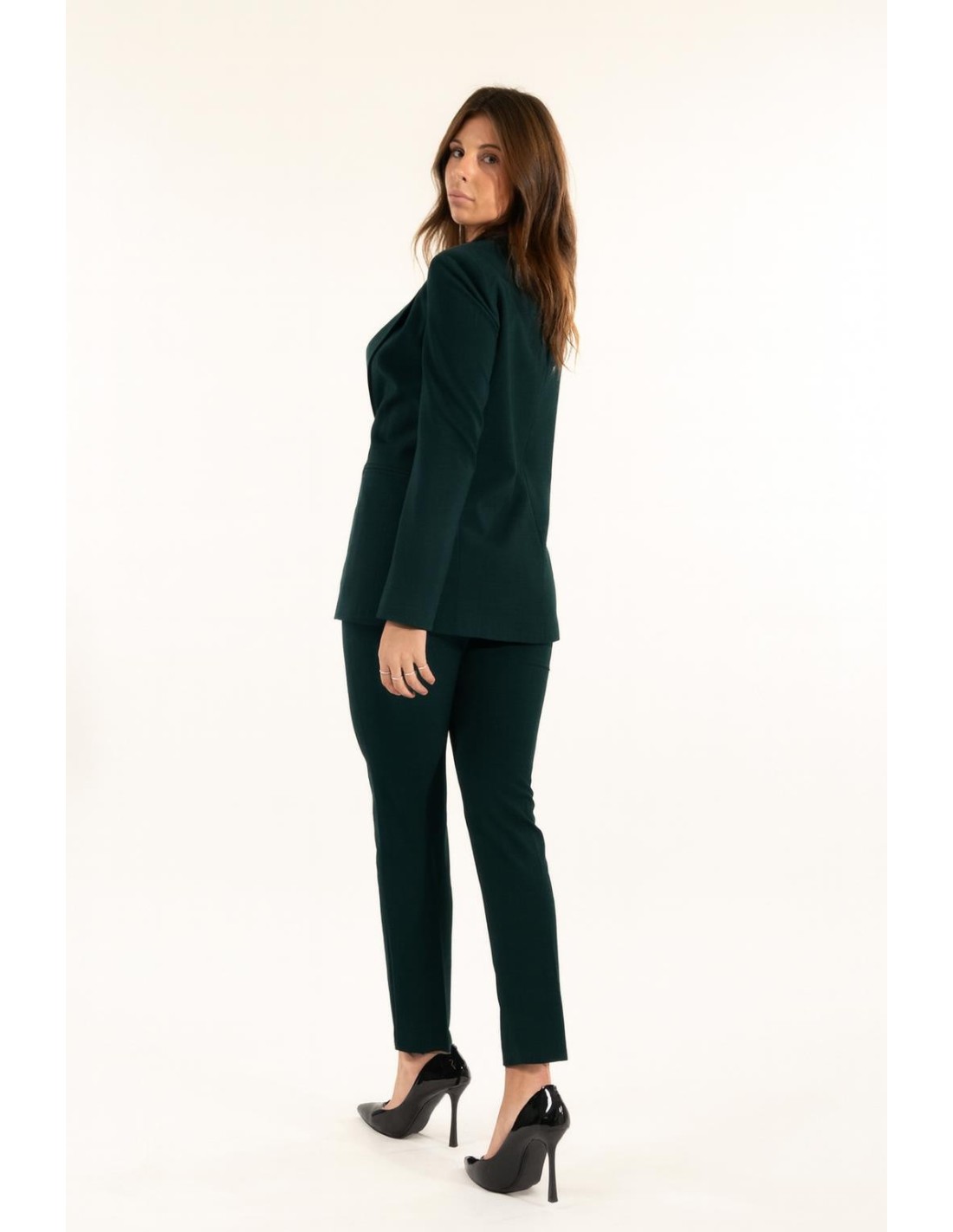 Kontatto assina umas calças a cigarreta com corte justo que alongam a silhueta sem apertar. Tecido macio e ligeiramente stretch, toque compacto. Cintura média com faixa limpa e passadores, bolsos à francesa e comprimento até ao tornozelo. Versáteis do dia para a noite: ideais para escritório, reuniões e aperitivos.