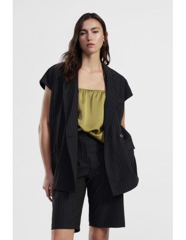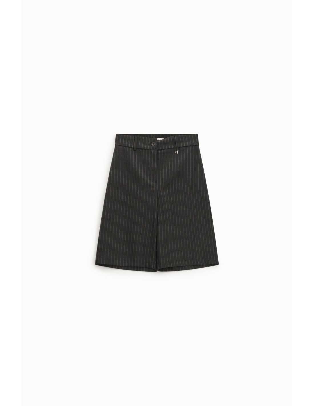 Um toque de originalidade para o seu estilo quotidiano com estes calções às riscas de corte direito e pelo joelho. Apresentam um fecho de botões, presilhas para cinto e um discreto pormenor de joia. Perfeitos para combinar com camisas ou tops leves para um look polido mas prático, ideal de manhã à noite.