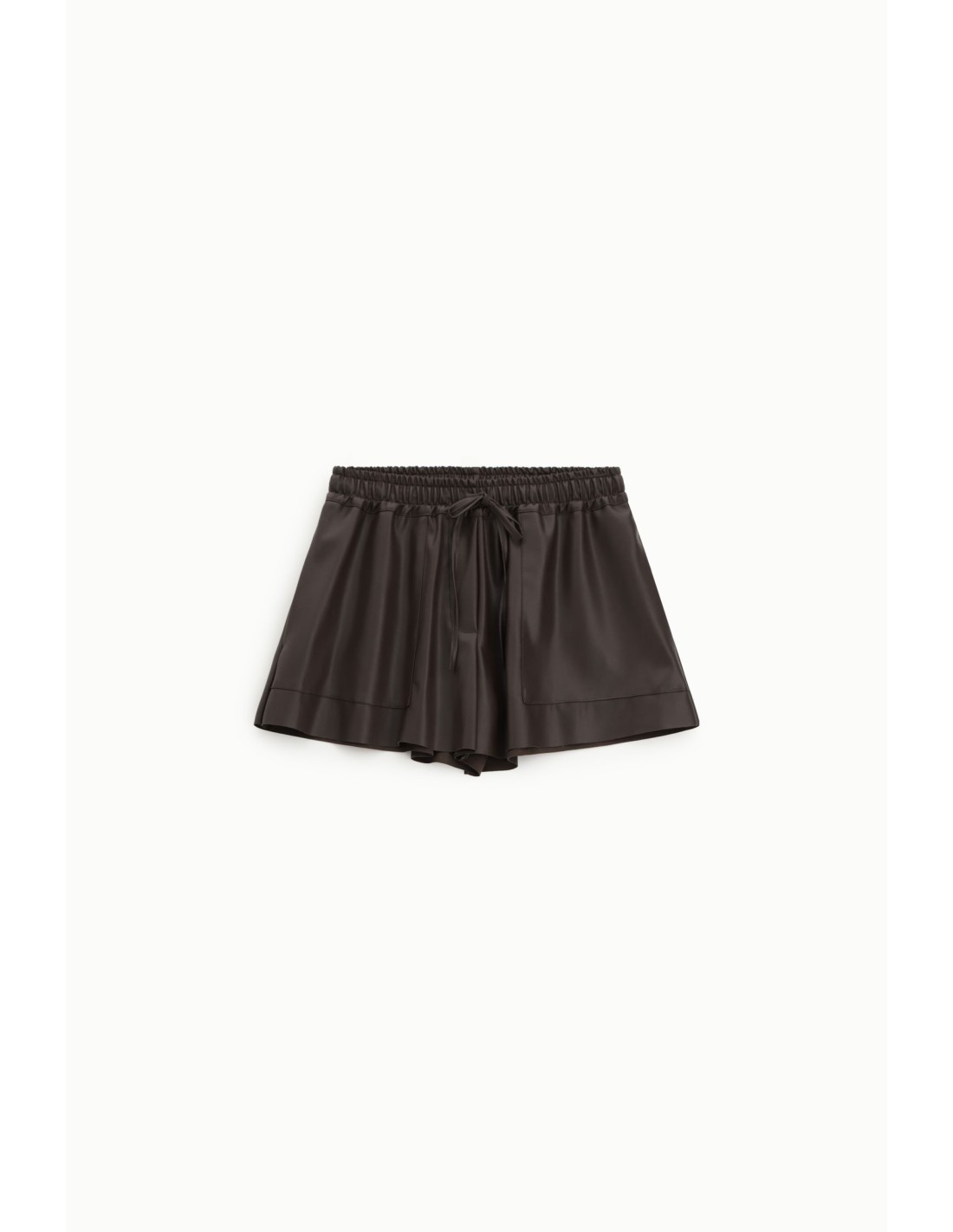 Estes calções têm uma silhueta suave e feminina, realçada por uma cintura elástica com um cordão ajustável que se adapta à sua silhueta todos os dias. As ligeiras pregas e a bainha suavemente arredondada conferem movimento para a acompanhar nos dias activos ou num passeio despreocupado.