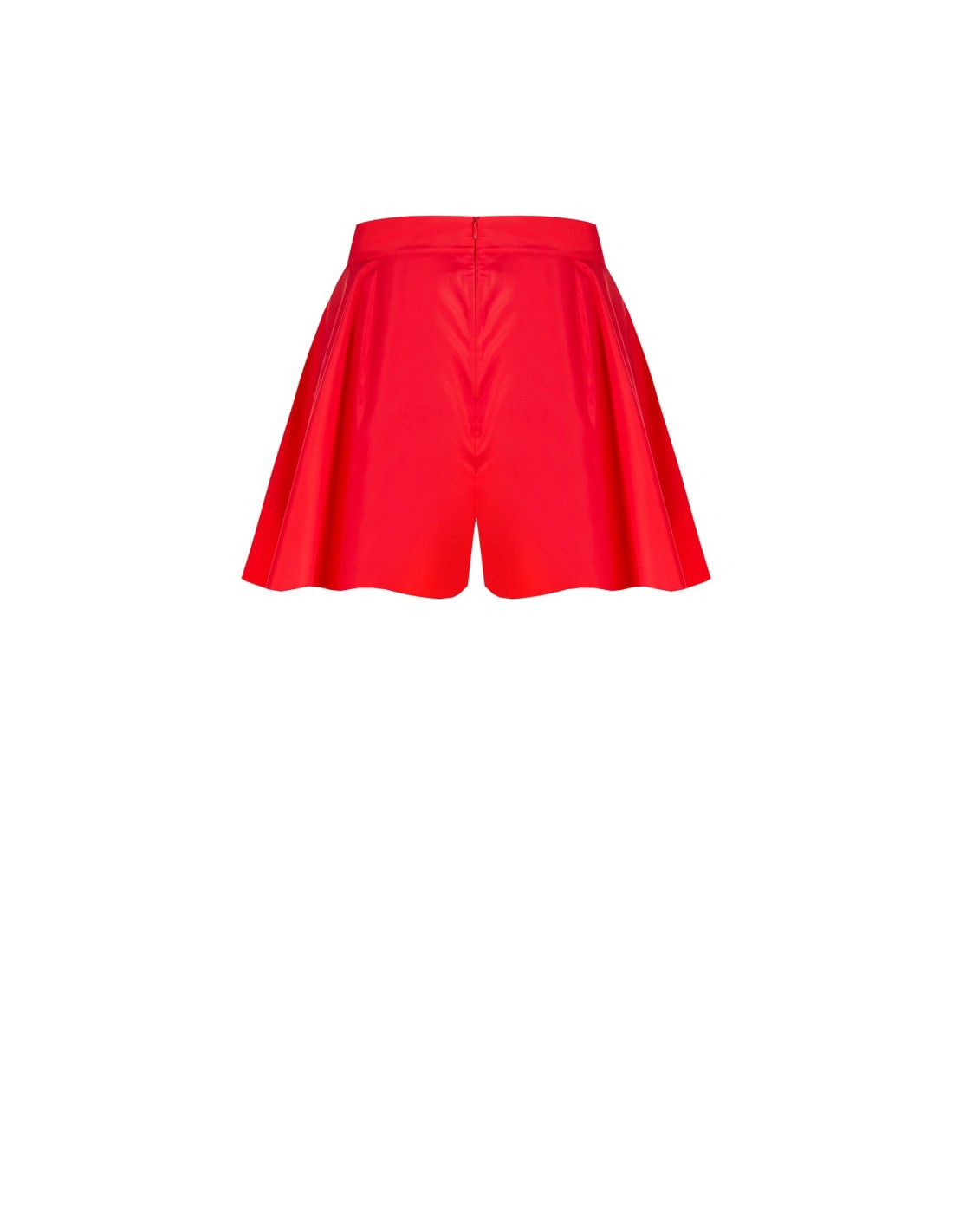 Calções com corte amplo e evasé, com um fit leve que alonga a silhueta e acompanha os movimentos com conforto. O nylon com textura lisa e luminosa confere carácter, enquanto a cintura alta estruturada e as pregas frontais definem o design. Perfeitos para lazer, looks de cidade e uma festa informal.