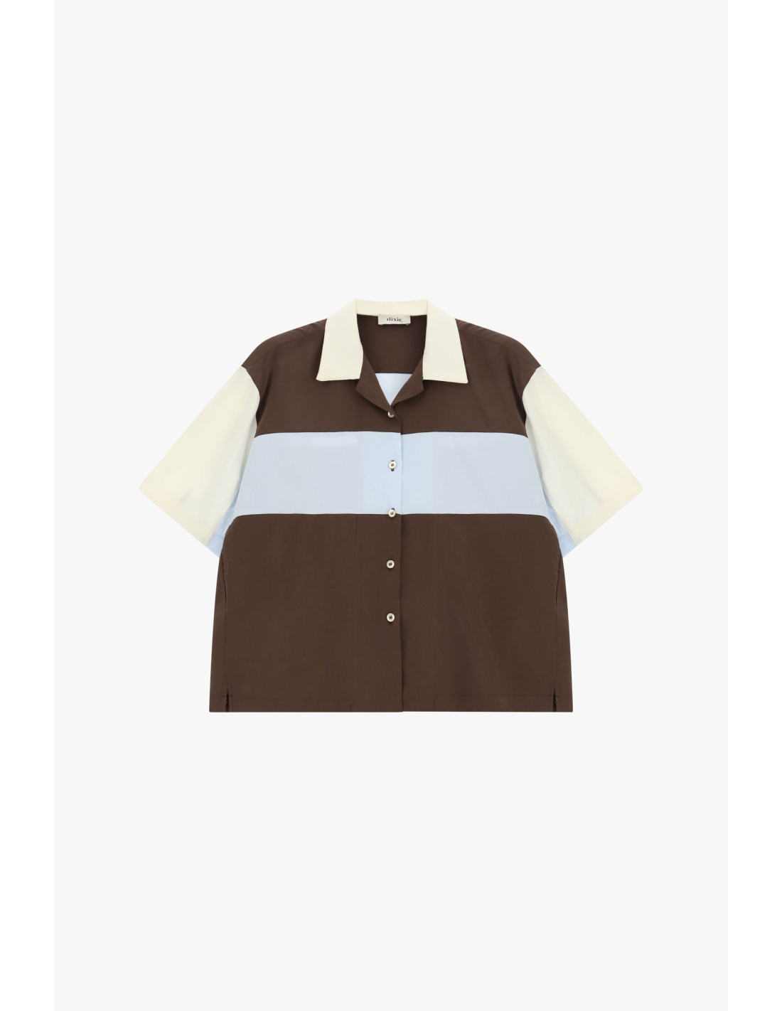 Uma camisa de corte confortável que realça o estilo feminino com o seu jogo de blocos em contraste. Perfeita para os dias em que procuras originalidade sem renunciar ao conforto, graças às mangas curtas e ao fecho frontal com botões. Fácil de combinar, confere um toque único ao teu look diário.