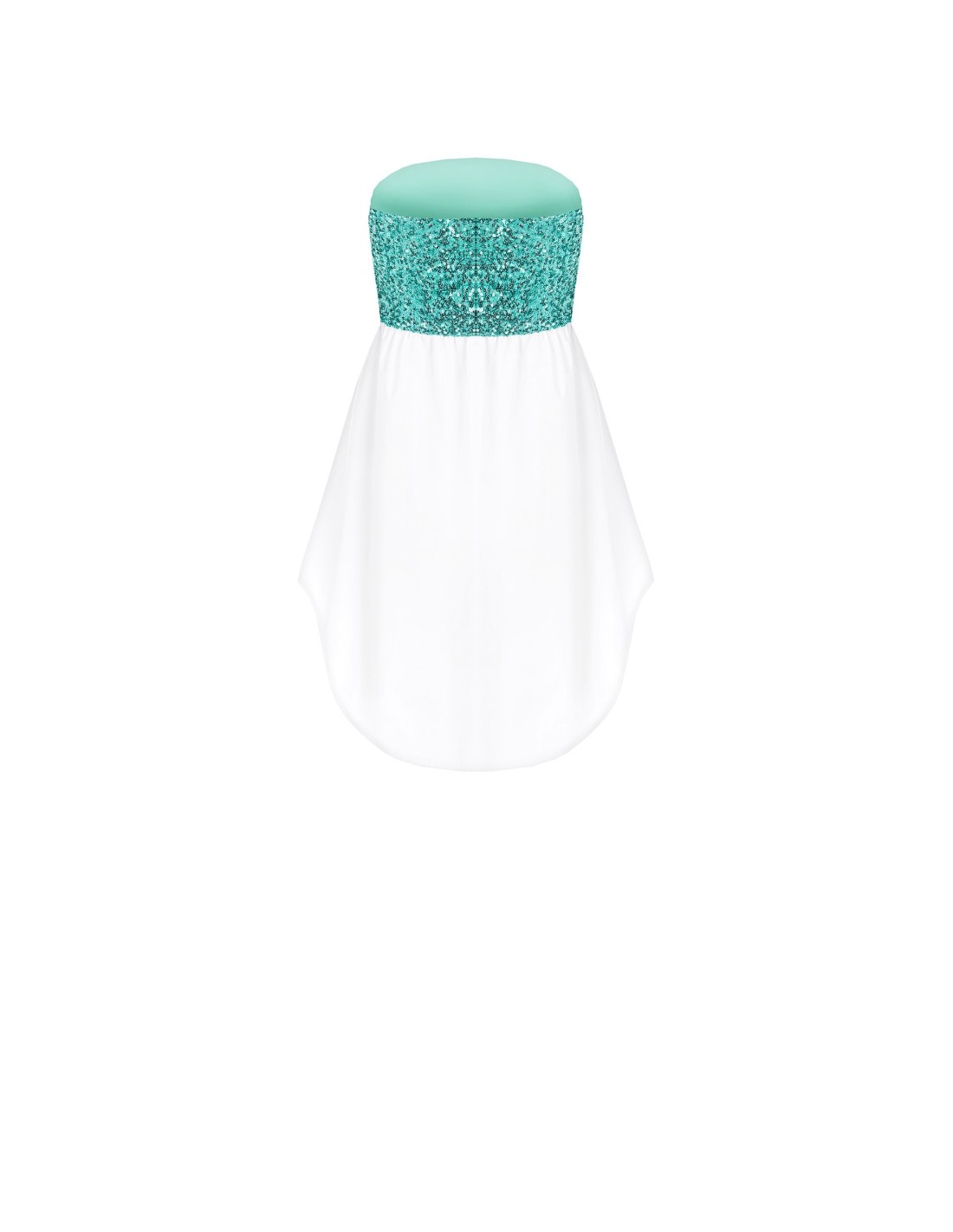 Top sem alças com corte macio e evasado, pensado para valorizar a silhueta com leveza. O corpete revestido de lantejoulas encontra um tecido fresco e fluido, enquanto o decote direito e os botões frontais acrescentam carácter. Perfeito para festas, aperitivos e eventos especiais.