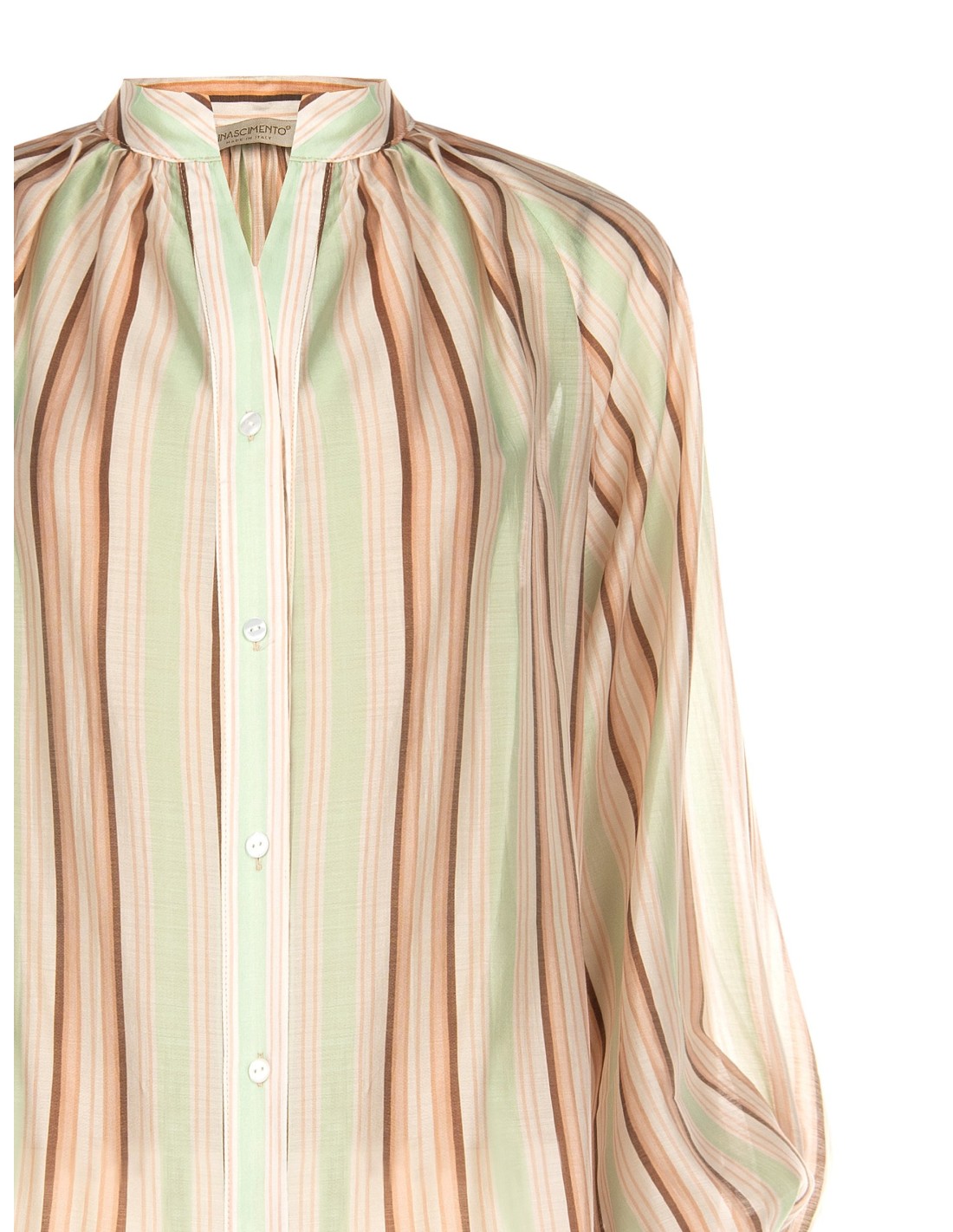 Camisa às riscas em lyocell ultraleve com mangas balão Rinascimento