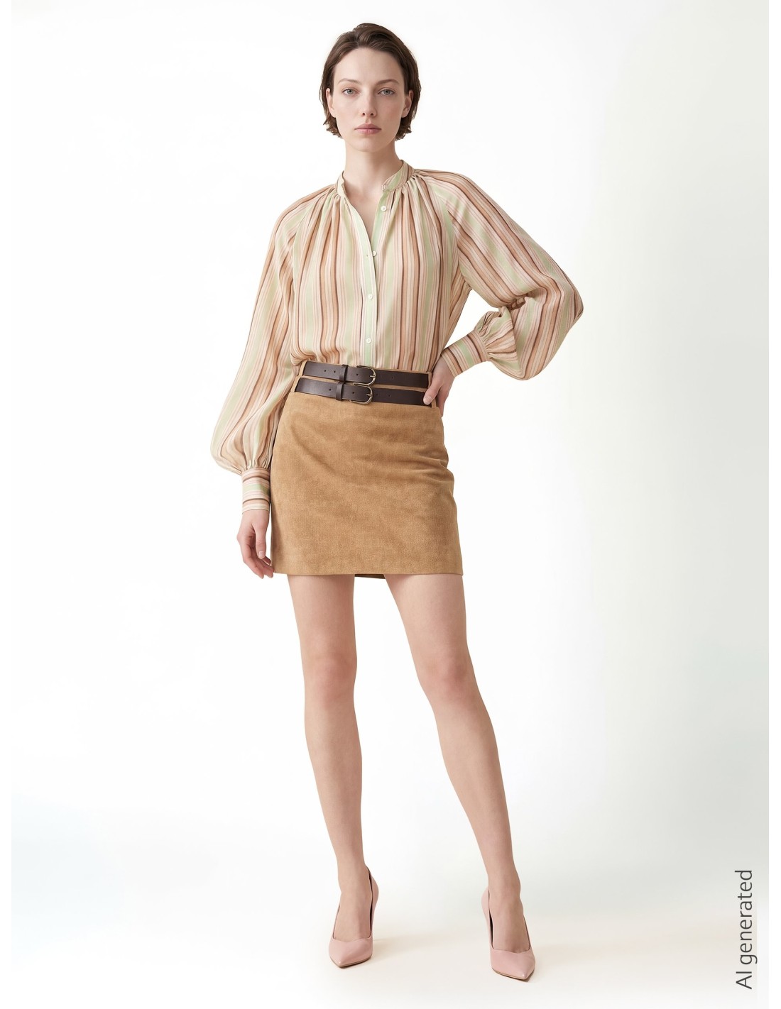 Blusa em lyocell ultraleve de corte macio e fluido, com mangas volumosas e delicada gola à coreana que se abre num discreto decote em V. As riscas verticais afinam a silhueta: perfeita com calças tailoring para o escritório ou com denim para o dia a dia.