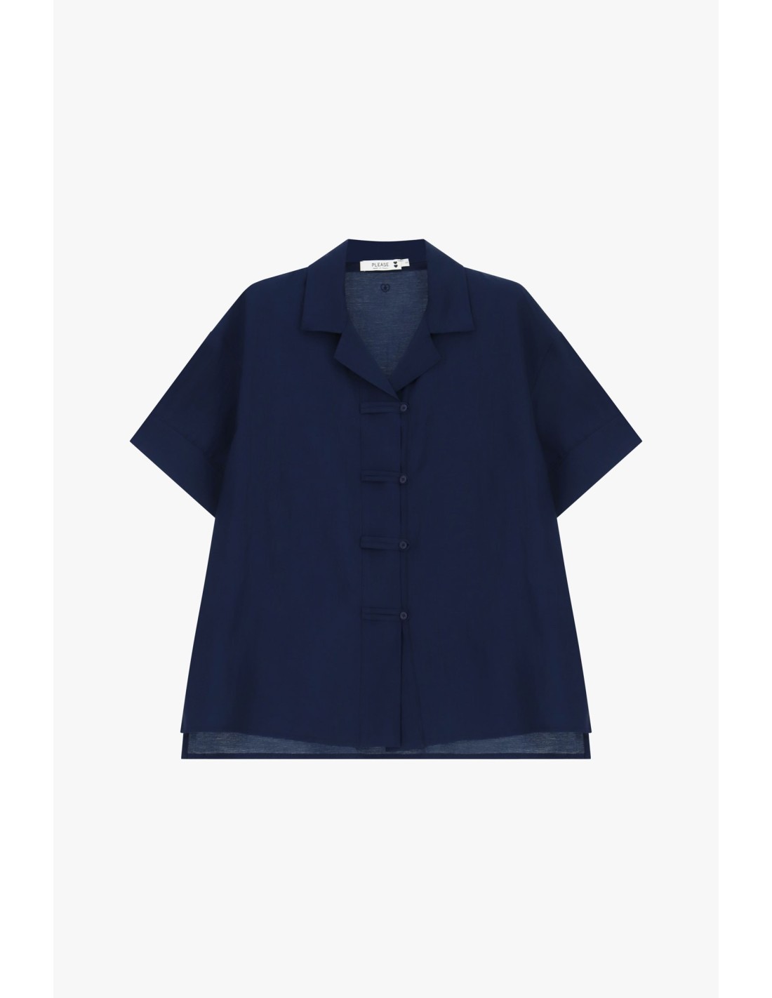 Uma camisa boxy com um espírito metropolitano que privilegia a praticidade. A silhueta curta e as mangas largas dão‑te plena liberdade de movimento, enquanto o fecho central com botões e a gola clássica tornam‑na fácil de combinar com os teus looks urbanos do dia a dia, desde os dias na cidade aos aperitivos depois do trabalho.