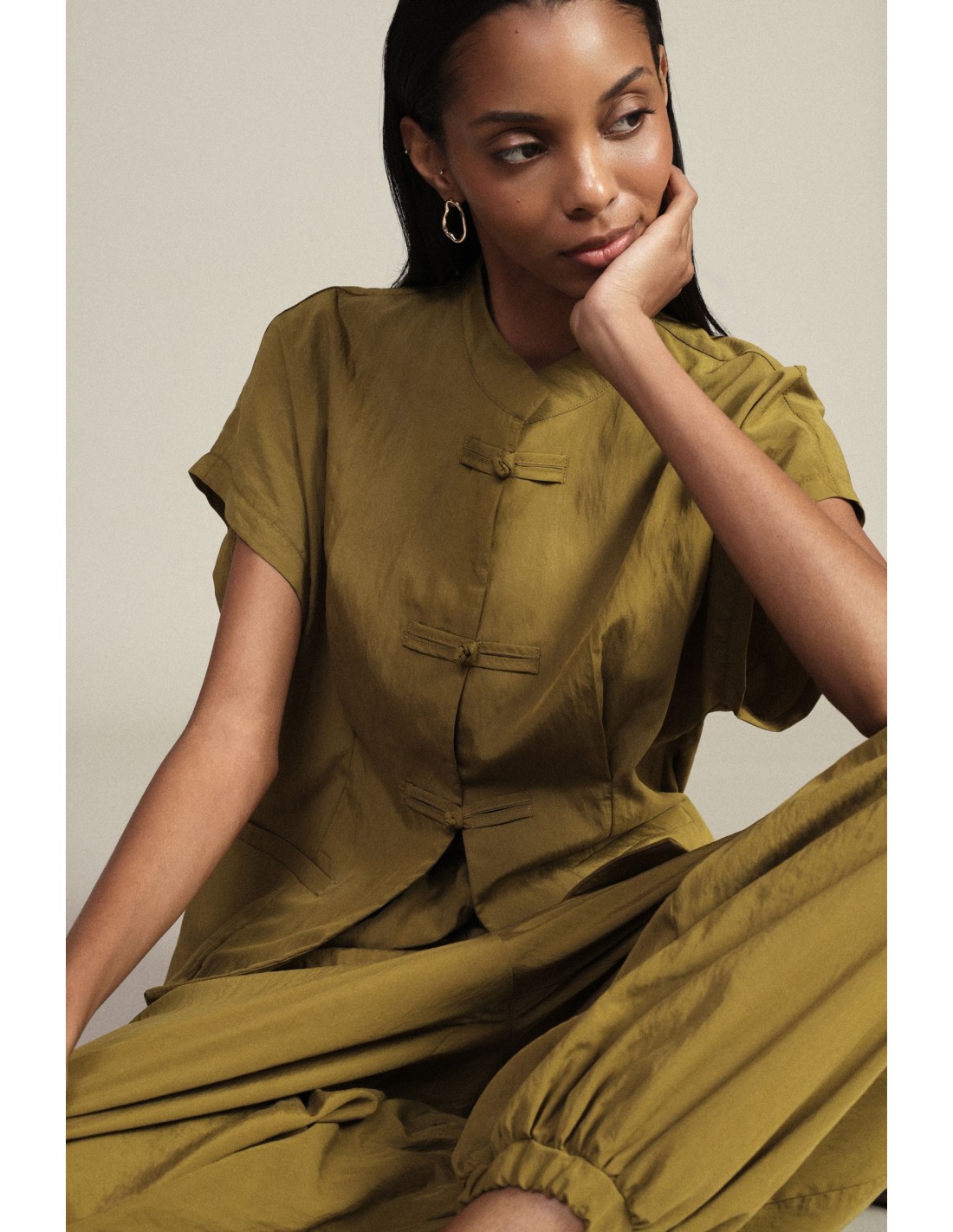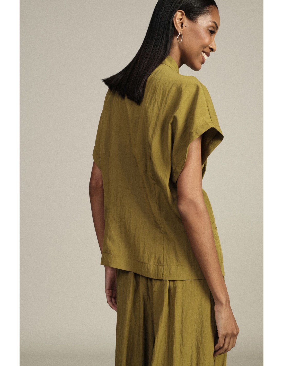Uma camisa de corte recto com mangas curtas e largas e práticos bolsos frontais. O fecho de nó dá um toque original e torna cada look diferente do habitual. Perfeita para usar tanto aberta como fechada, adapta-se com facilidade ao teu dia e acompanha-te nos momentos de relax ou durante um passeio pela cidade.