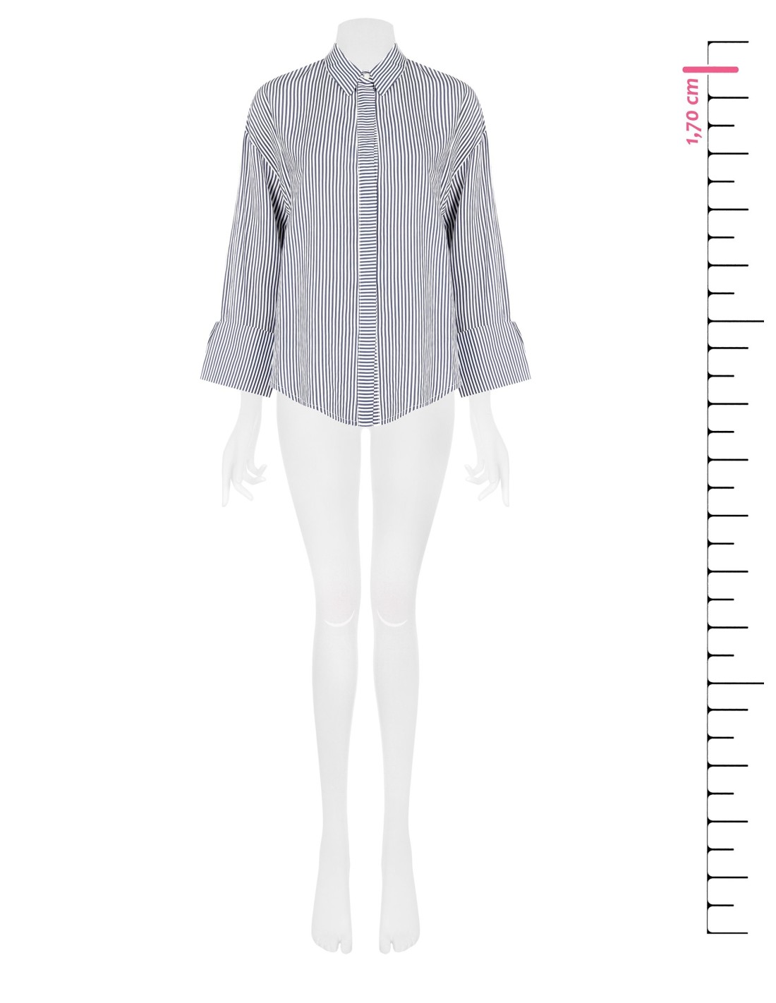 Camisa Em Mistura De Viscose Às Riscas Com Maxi Punhos E Botões Ocultos Rinascimento