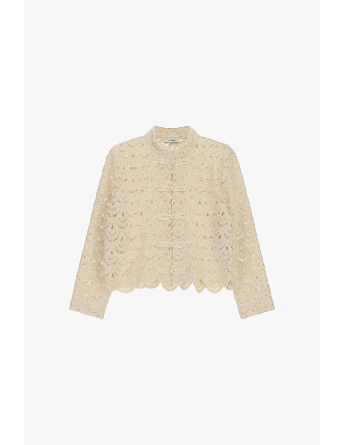 Camisa em renda com bordas festonadas e botões Dixie