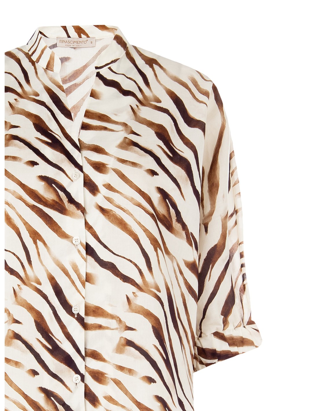 Camisa Oversize Em Algodão Com Gola À Coreana E Decote Em V Rinascimento