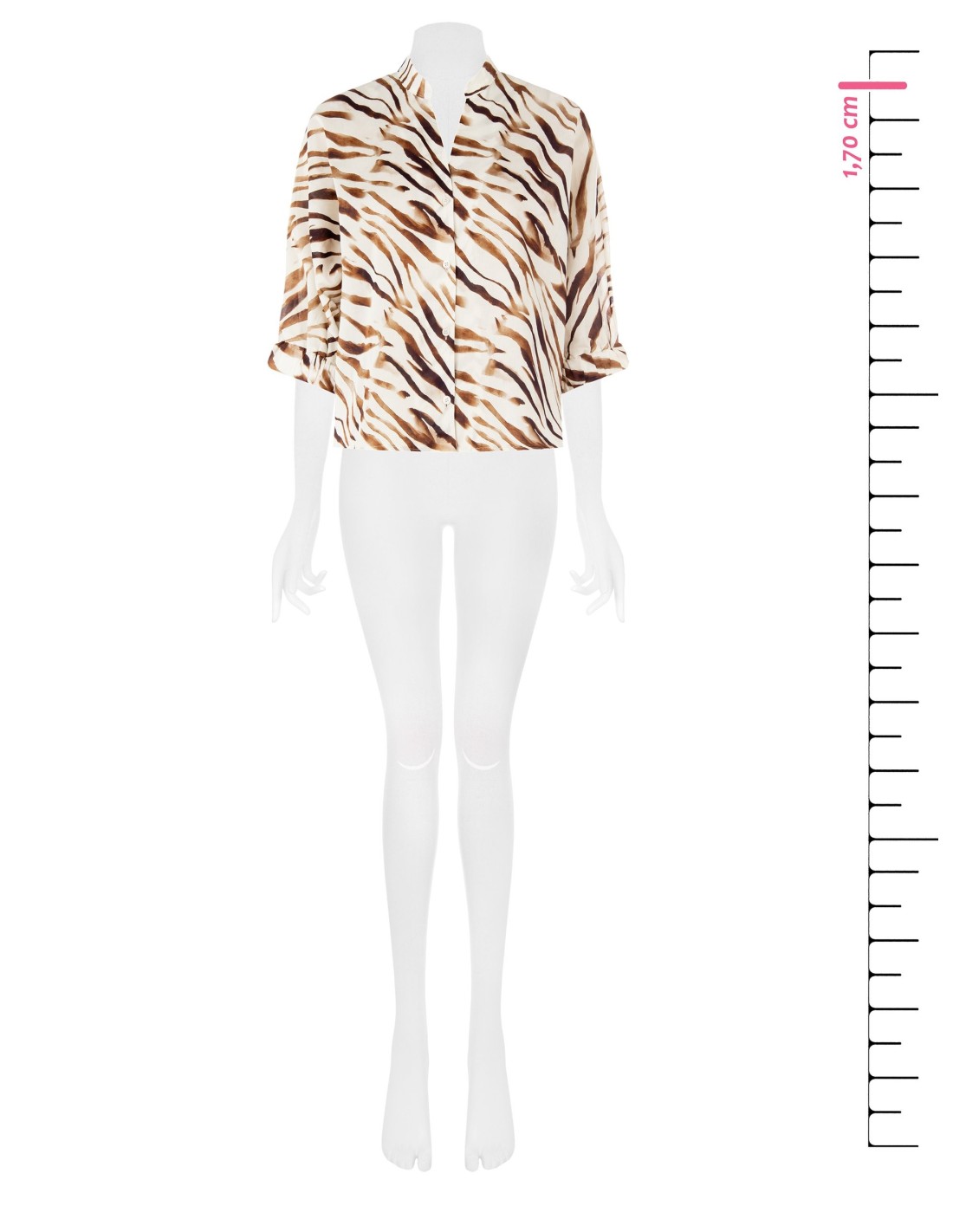 Blusa em algodão leve com um corte suave, concebida para acompanhar os movimentos e valorizar a silhueta com naturalidade. Gola à coreana, decote em V e fecho frontal com botões definem o design, enquanto a textura estampada acrescenta carácter. Perfeita do escritório ao aperitivo.