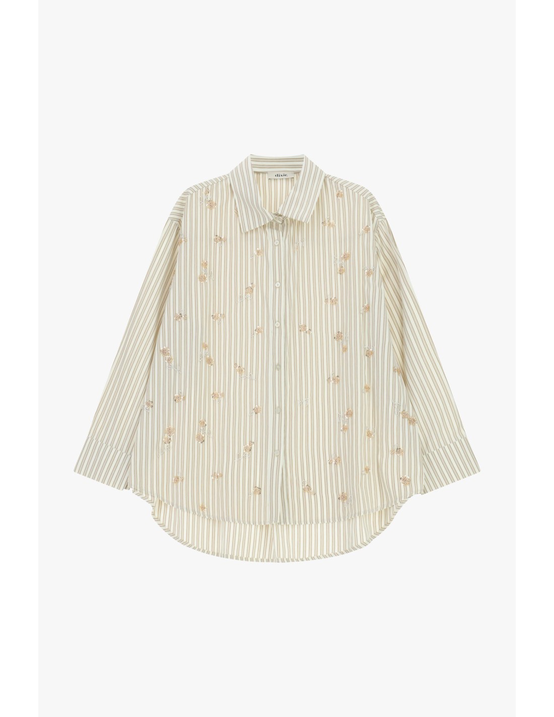 Camisa Oversize Às Riscas Com Bordados Florais Dixie