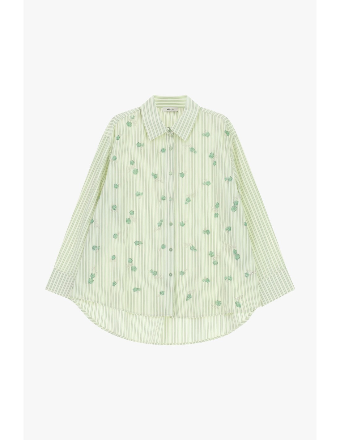 Camisa Oversize às Riscas com Bordados Florais Dixie