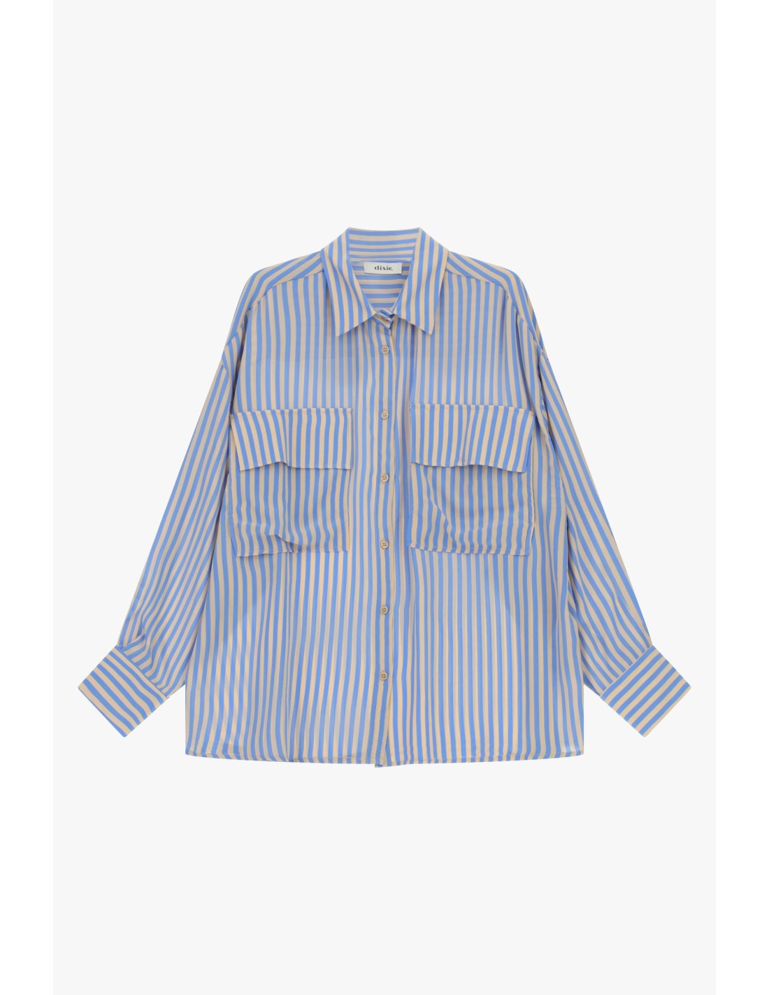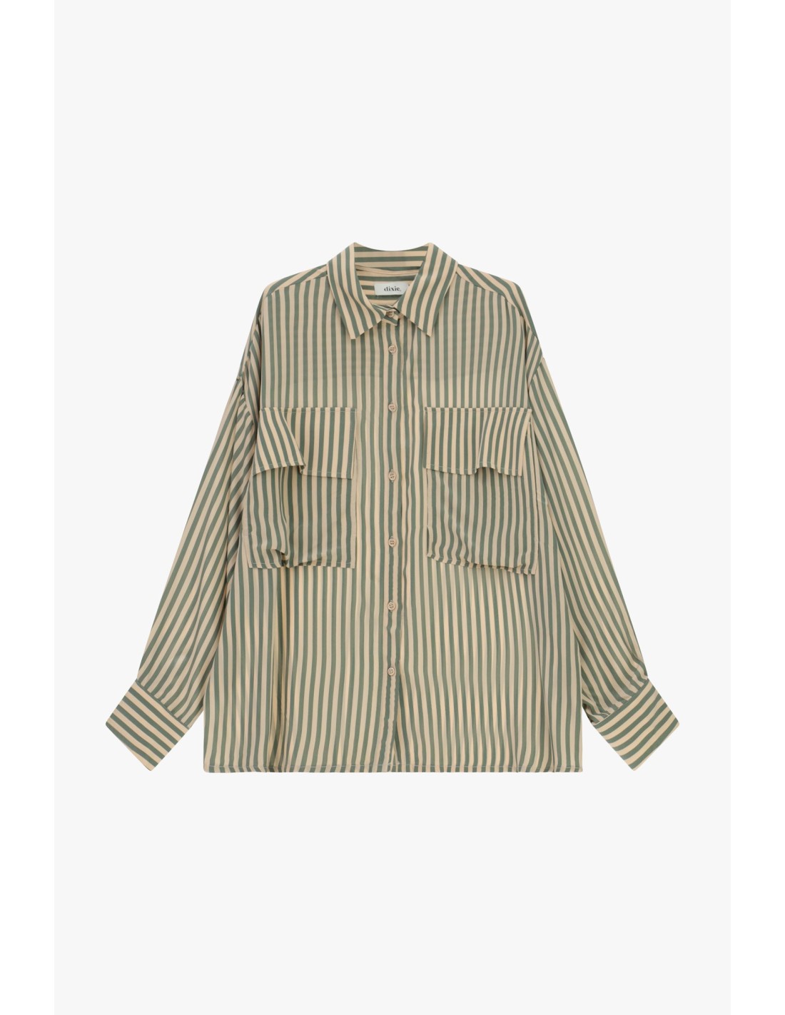 Camisa Oversize Às Riscas Com Bolsos Frontais Dixie