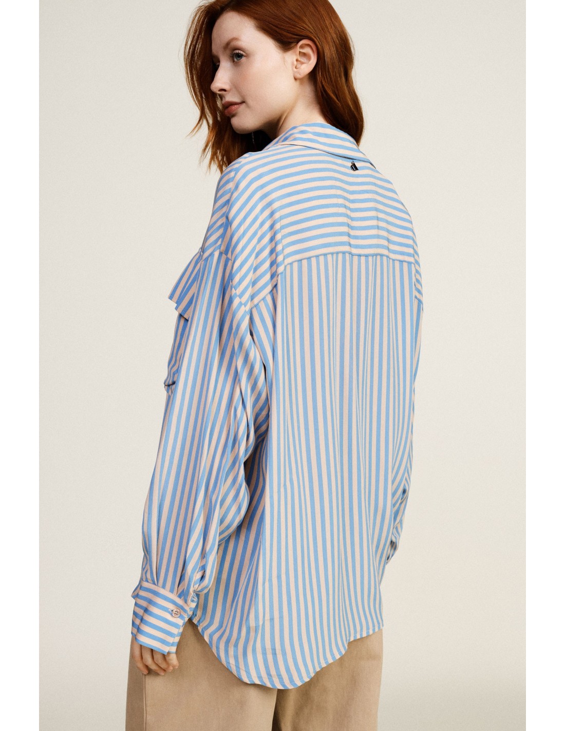 Esta camisa oversize às riscas dá um toque original aos looks do dia a dia. Os dois grandes bolsos aplicados no peito acrescentam personalidade e funcionalidade. Usa-a aberta ou fechada, perfeita tanto com calças como com saias para te acompanhar com conforto e estilo desde a manhã até à noite.