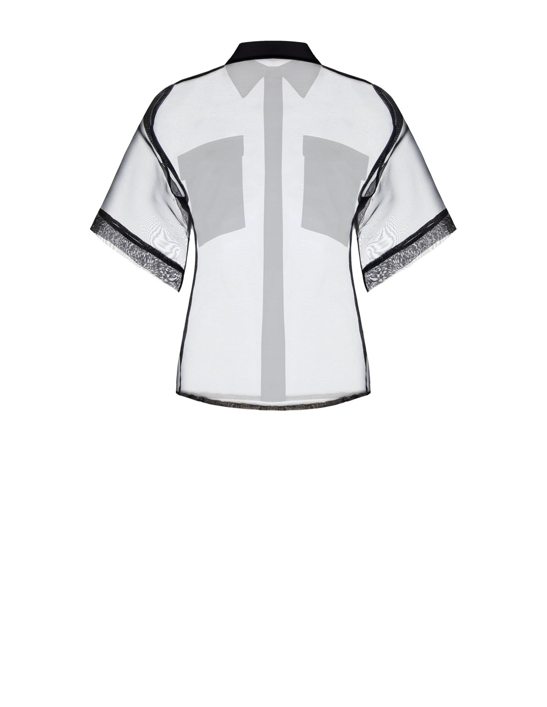 Blusa com corte suave e linear, em organza leve com detalhes com efeito acetinado que conferem estrutura sem sobrecarregar a silhueta. O colarinho clássico e os bolsos aplicados com logótipo adicionam carácter. Perfeita do escritório ao aperitivo, para looks femininos e versáteis.