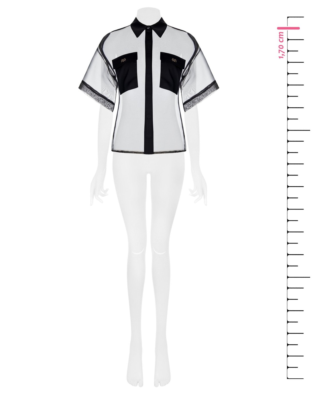 Camisa Quadrada em Organza com Bolsos em Cetim com Logótipo Rinascimento