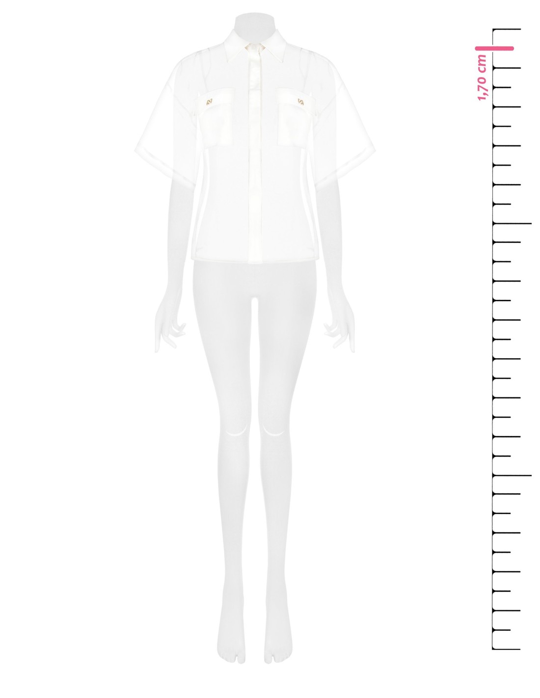 Camisa Quadrada em Organza com Bolsos em Cetim com Logo Rinascimento