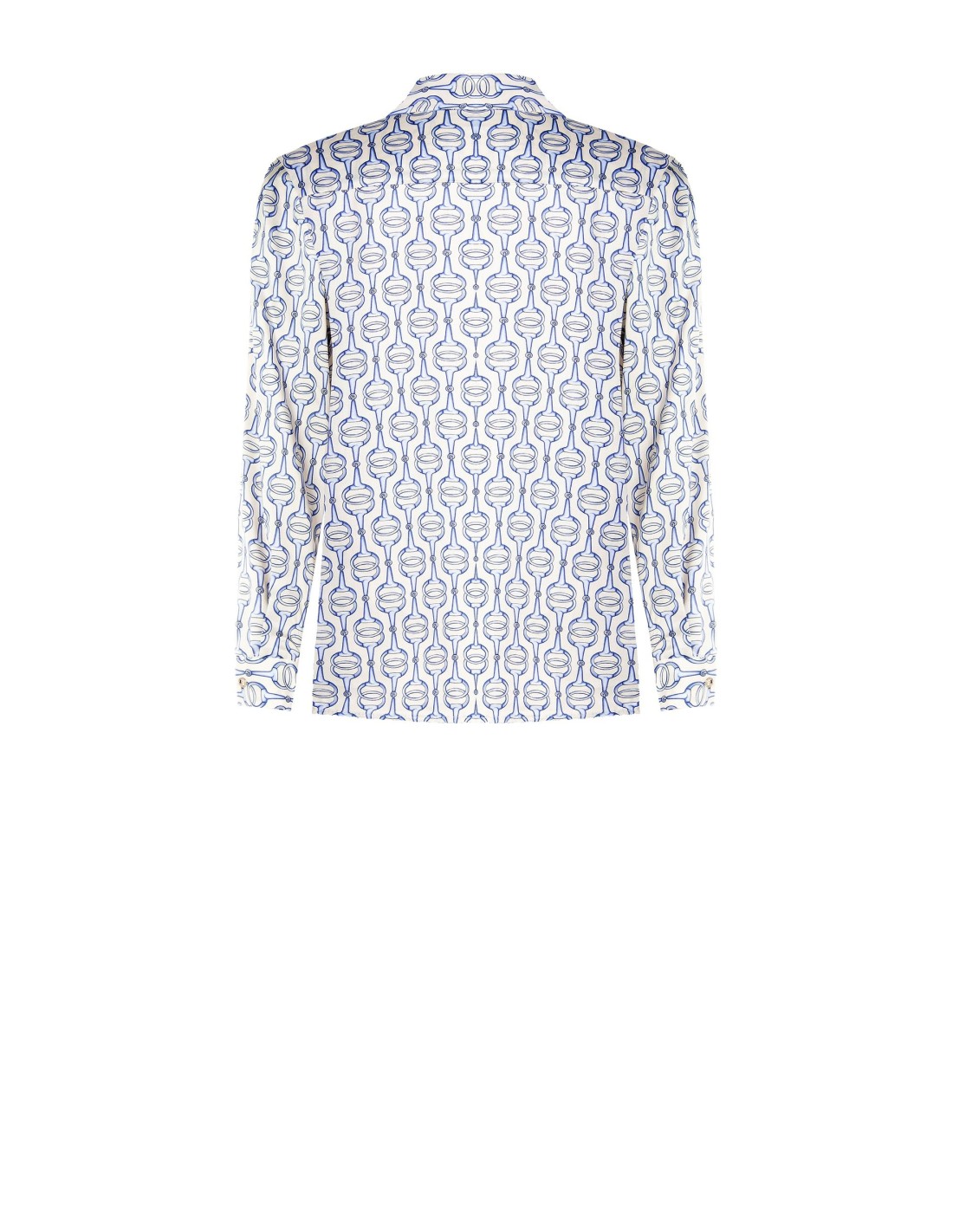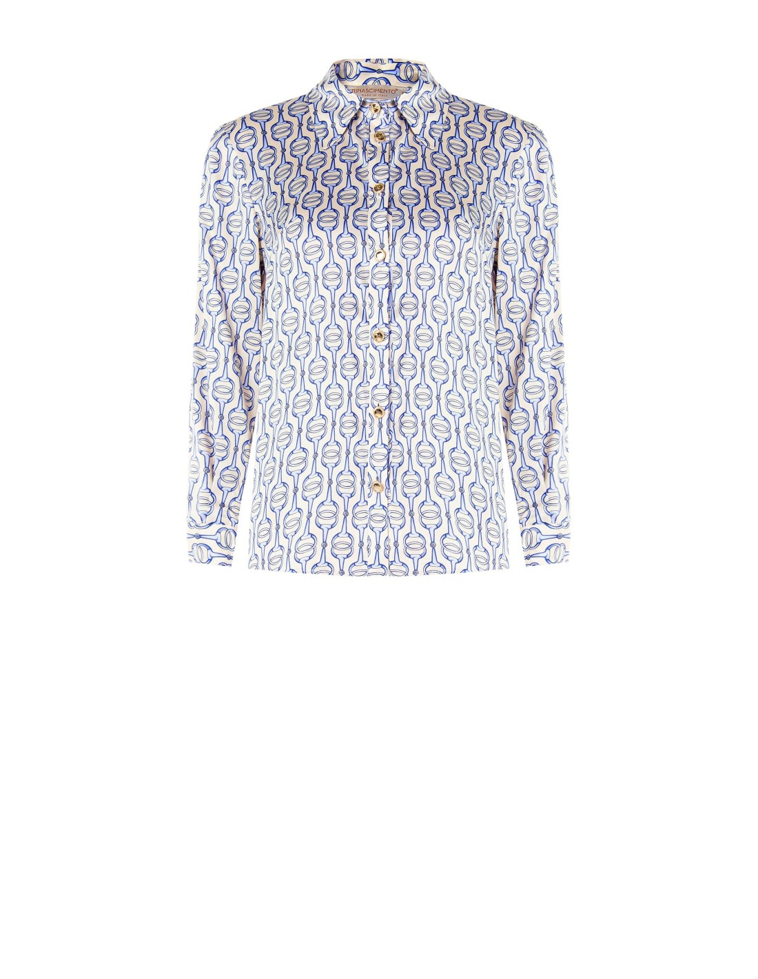 Blusa de corte regular e fluido, confeccionada em viscose de toque macio e leve, perfeita para acompanhar os movimentos com conforto. A gola clássica e os botões bijou com logótipo acrescentam um toque requintado, enquanto a estampagem all over torna-a ideal para o escritório e para looks do dia a dia.