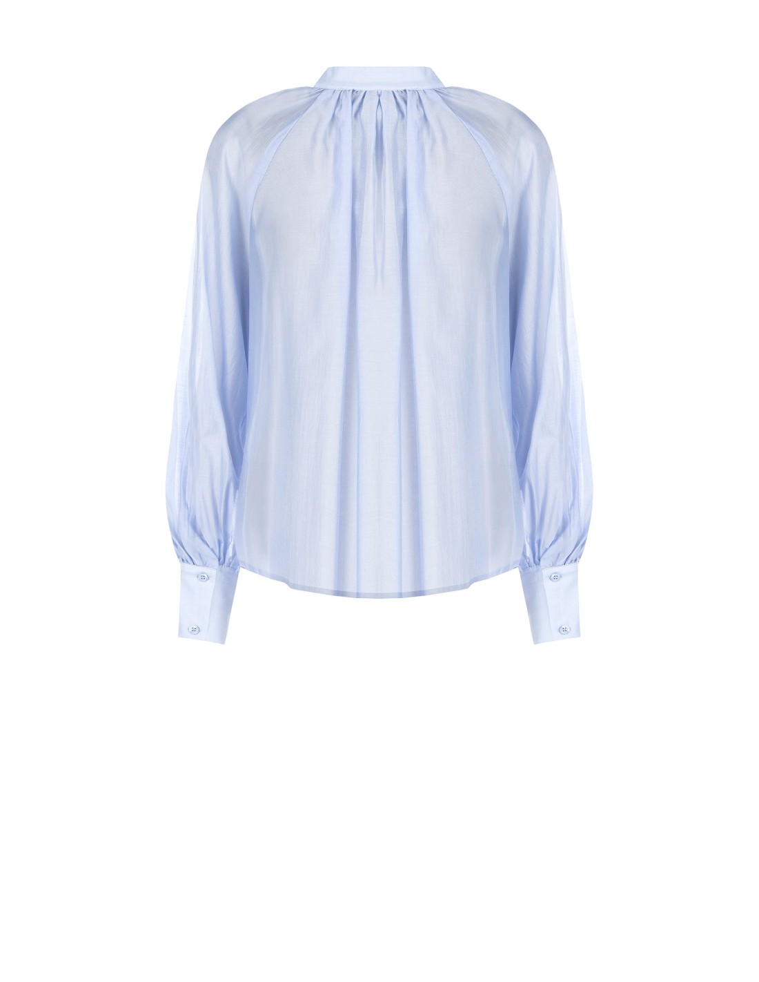 Top fluido de corte macio, em tecido leve e sedoso que acaricia a silhueta com conforto. O colarinho à coreana com abertura em V e os franzidos nos ombros acrescentam feminilidade, enquanto os punhos altos definem o look. Perfeito no escritório e nas ocasiões do dia a dia mais cuidadas.