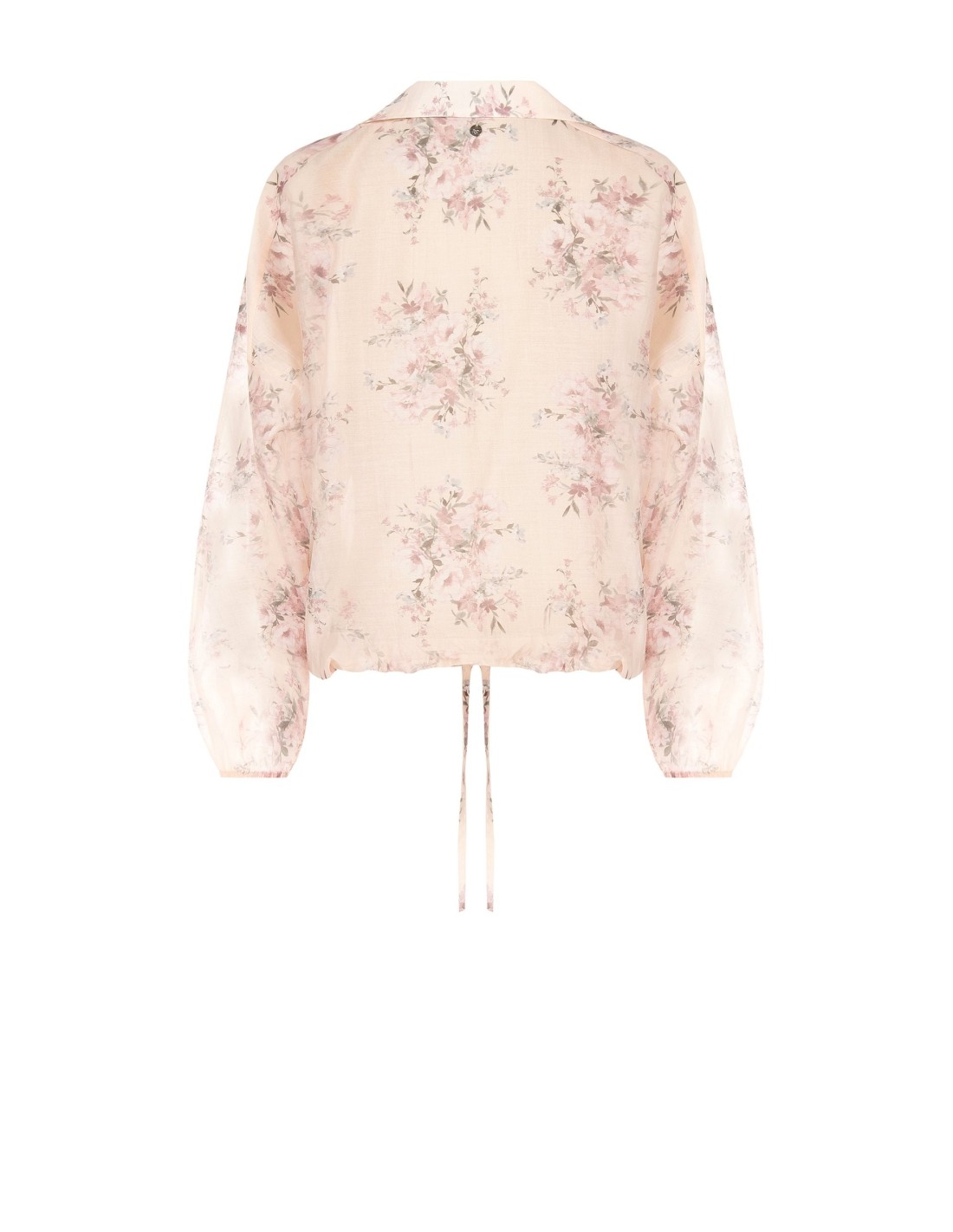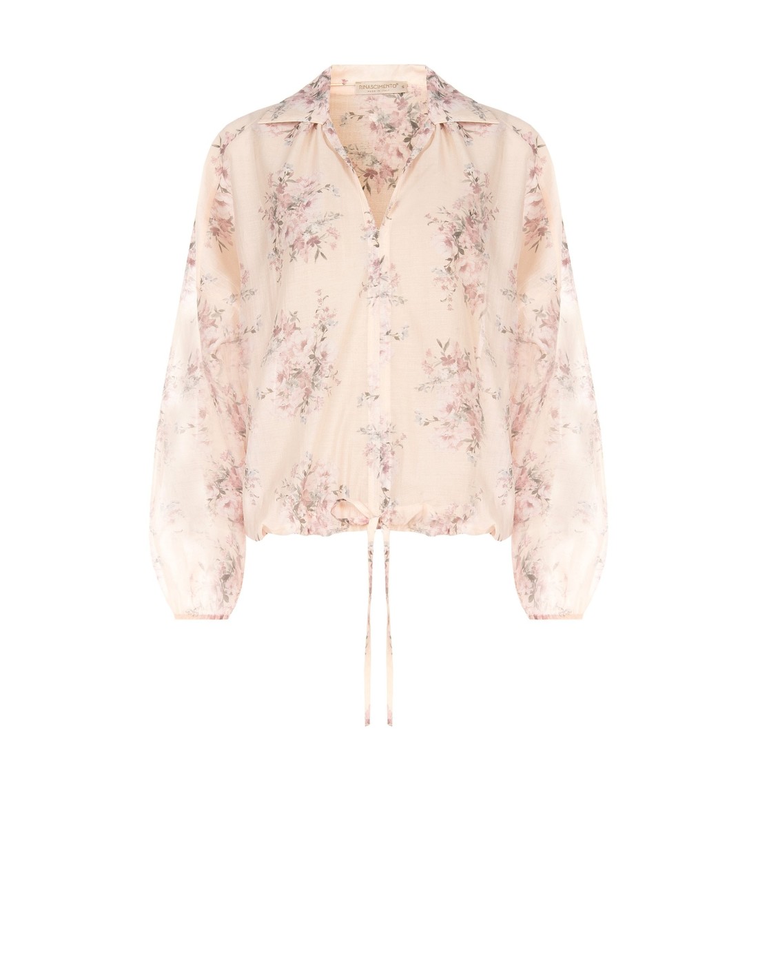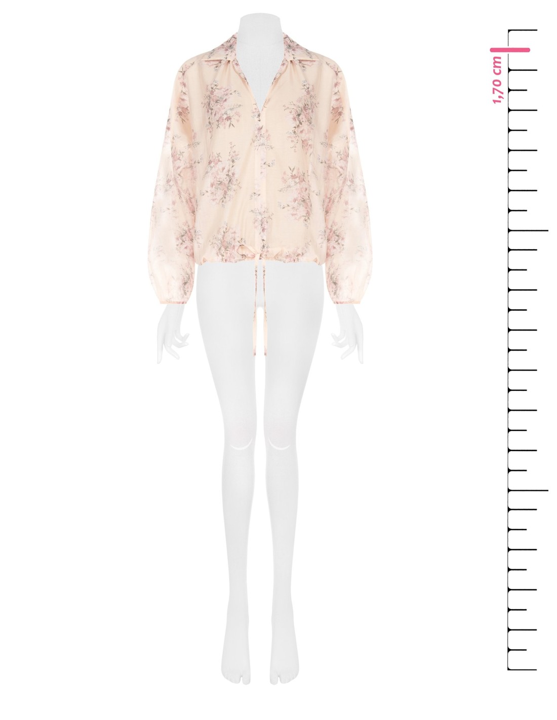 Peça fluida em voile leve, de corte suave que roça a silhueta. Gola com abertura em V e mangas amplas com punho franzido. A bainha regulável com cordão permite-lhe ajustar o caimento, ideal sobre denim ou calças de alfaiataria para o escritório e para o fim de semana.
