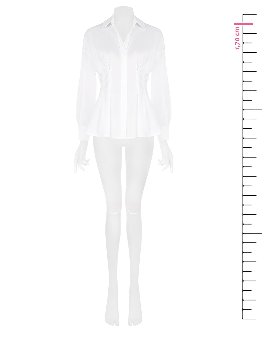 Top fluido de linha suave mas definida, em tecido leve de toque liso que acompanha os movimentos e valoriza a silhueta. O decote em V com colarinho e as pences na cintura acrescentam carácter. Perfeito para o escritório e para looks do dia a dia cuidados.