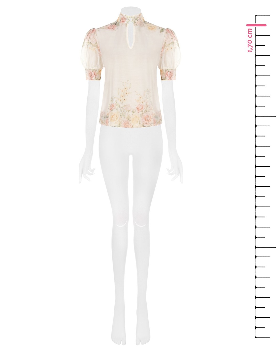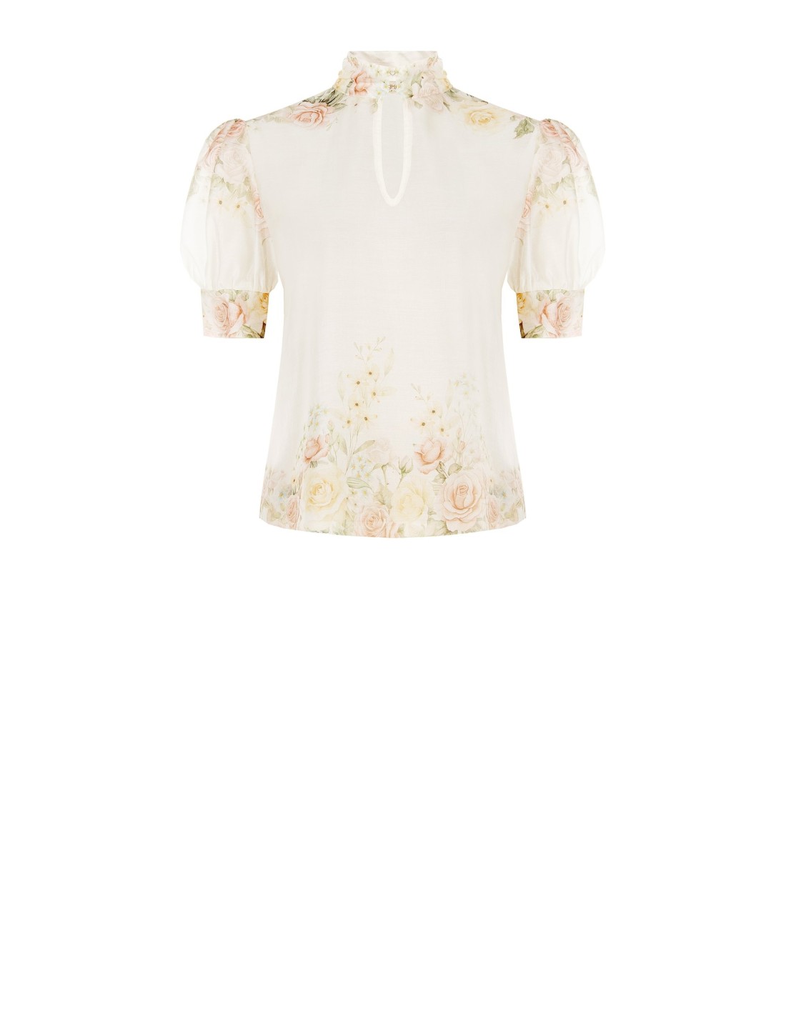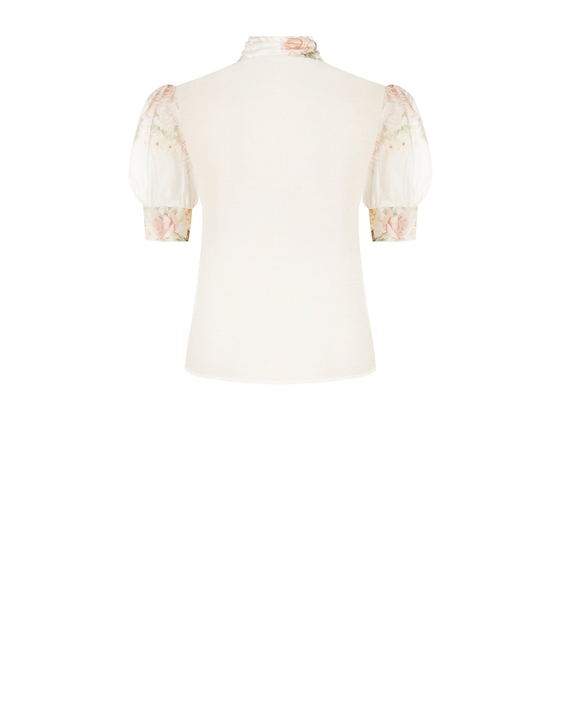 Top de corte suave e feminino, em tecido leve e fluido com delicada estampa floral. O decote alto franzido e a abertura em gota alongam a silhueta, enquanto as mangas bufantes conferem conforto e carácter. Perfeito para o escritório, um almoço especial ou looks do dia a dia cuidados.
