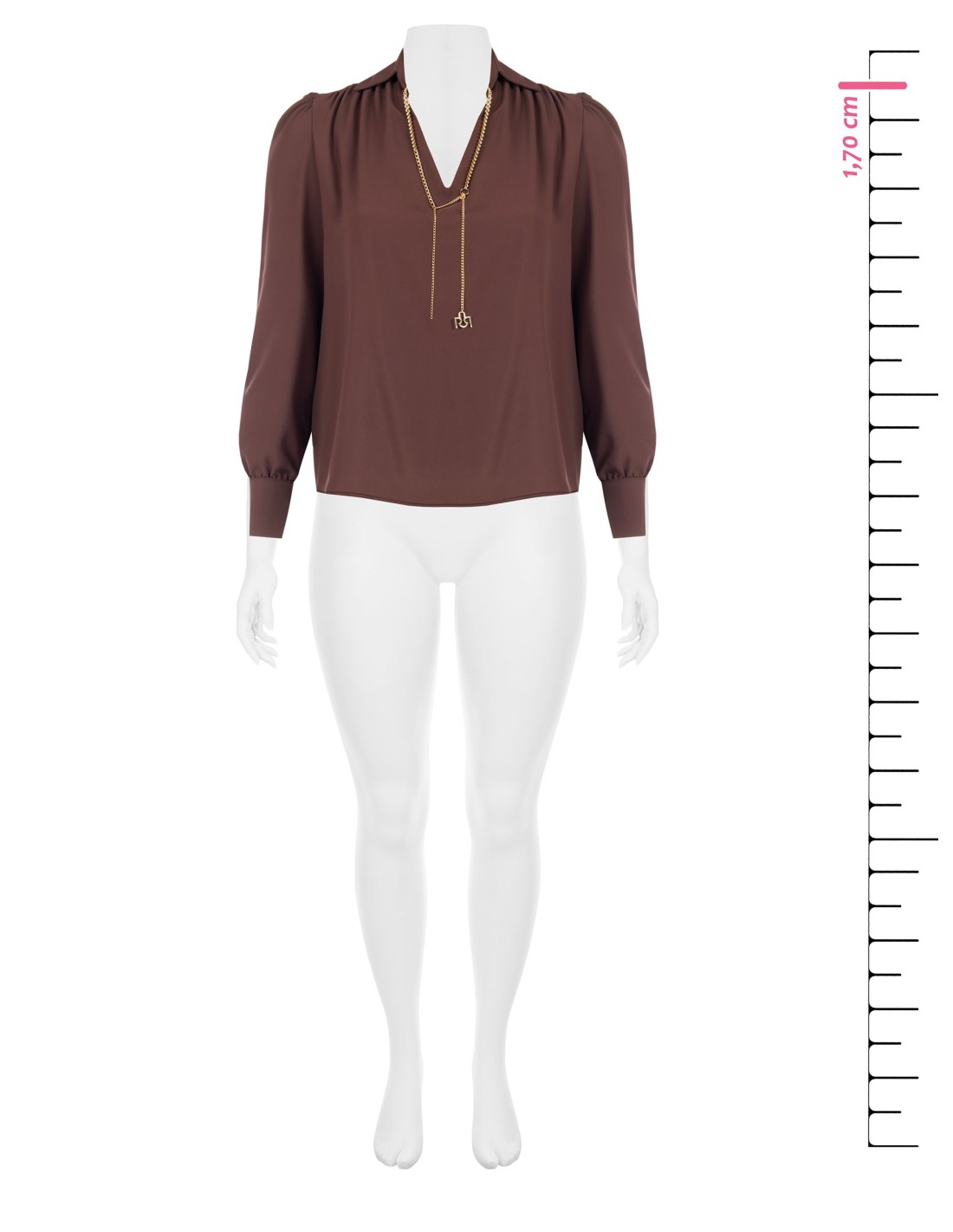 Camisa Curvy De Cetim Com Decote Em V E Pormenor De Corrente Rinascimento Curvy