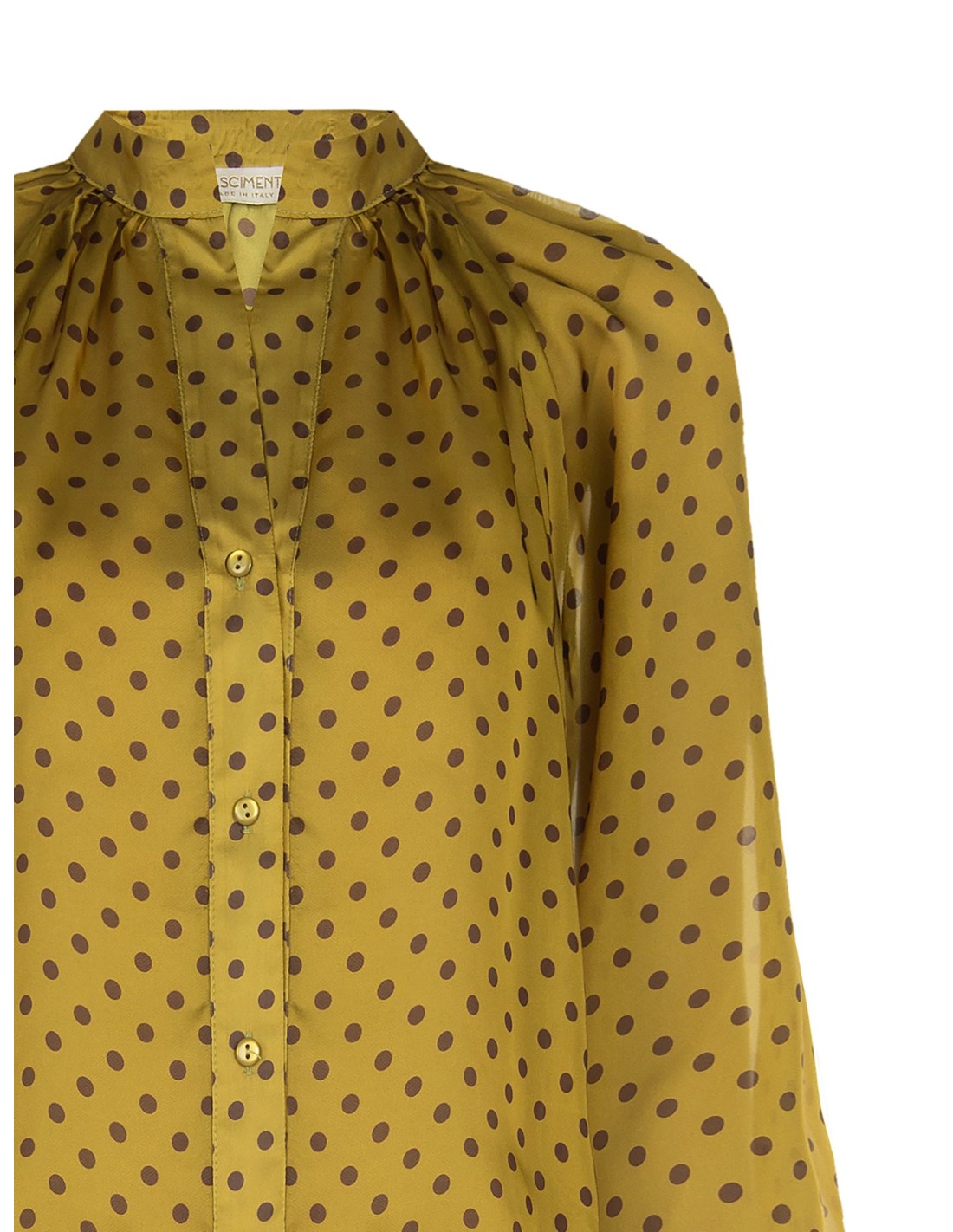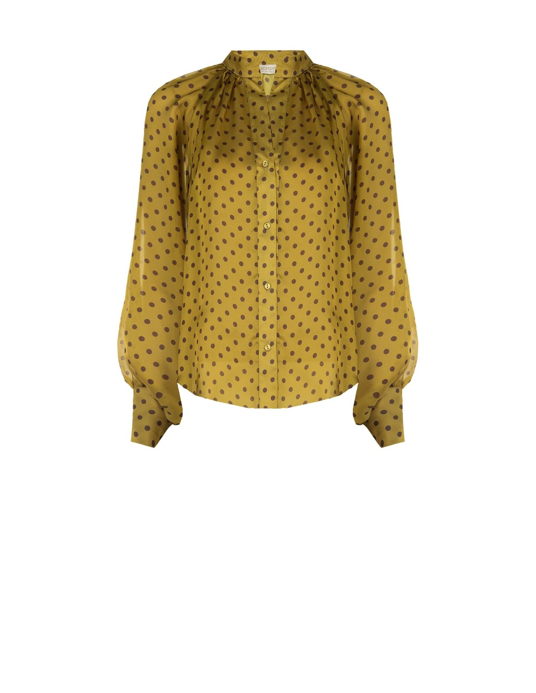 Camisa fluida em cetim com bolinhas e maxi mangas Rinascimento