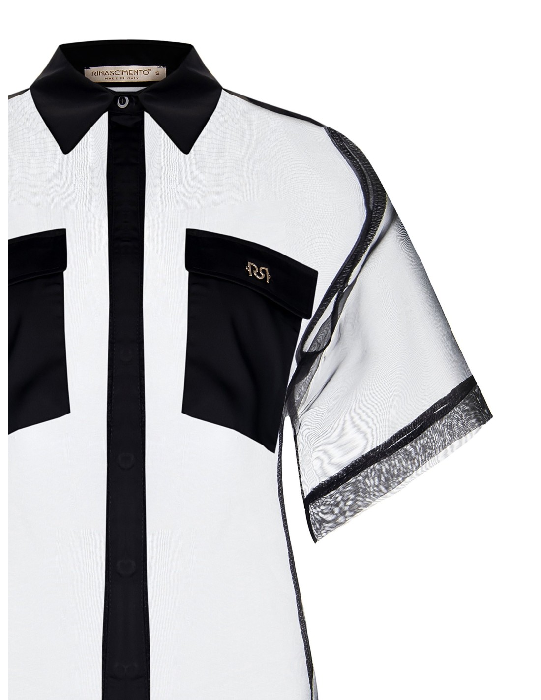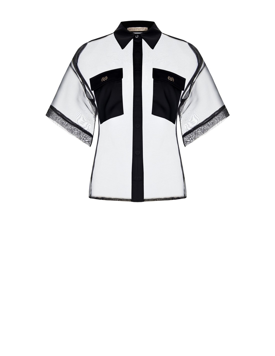 Camisa Quadrada Em Organza Com Bolsos Em Cetim Com Logótipo Rinascimento