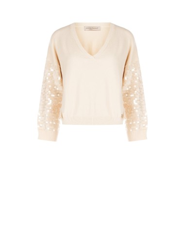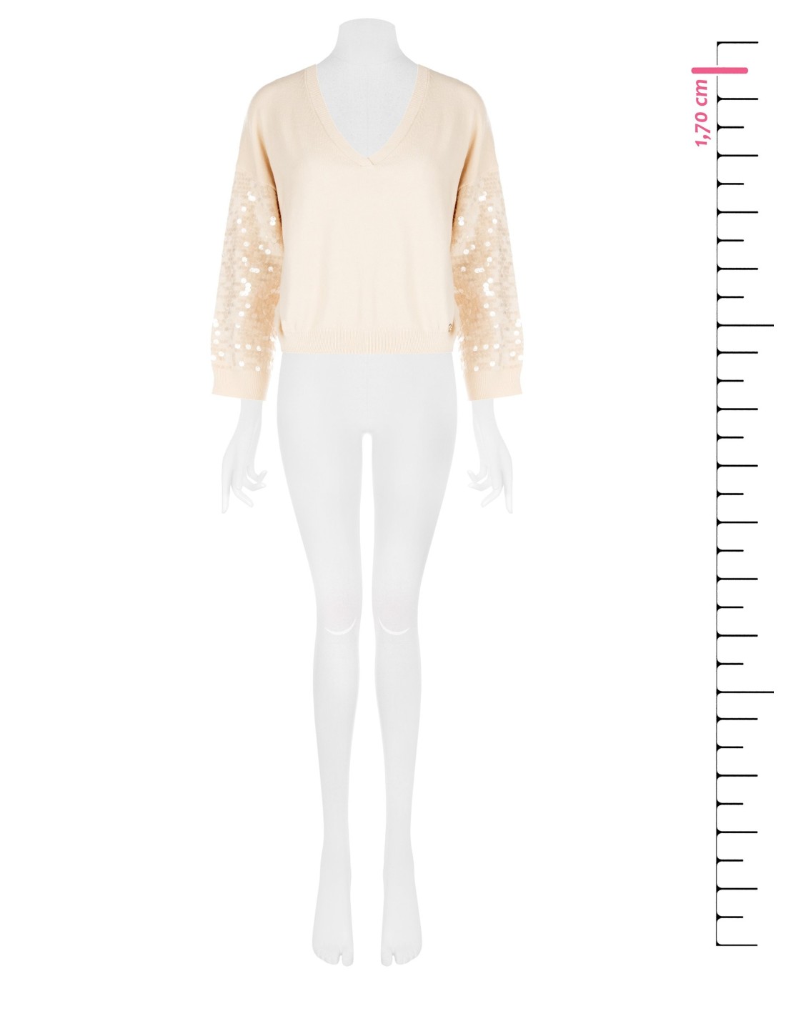 Camisola com decote em V profundo e mangas cobertas com lantejoulas Maxi Rinascimento