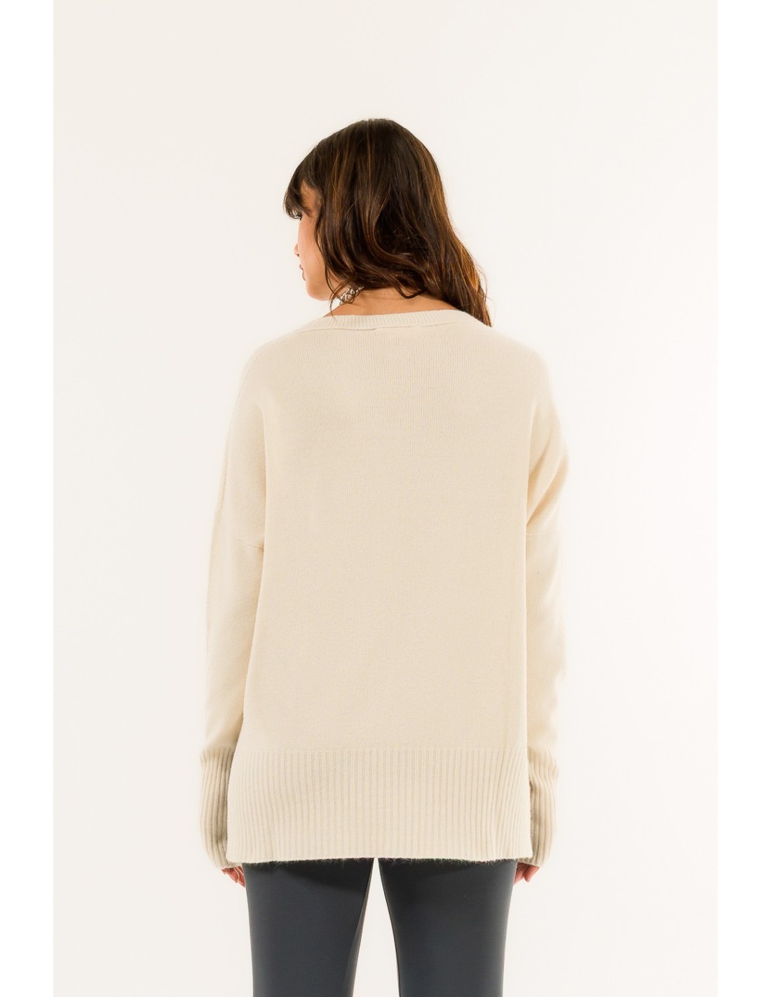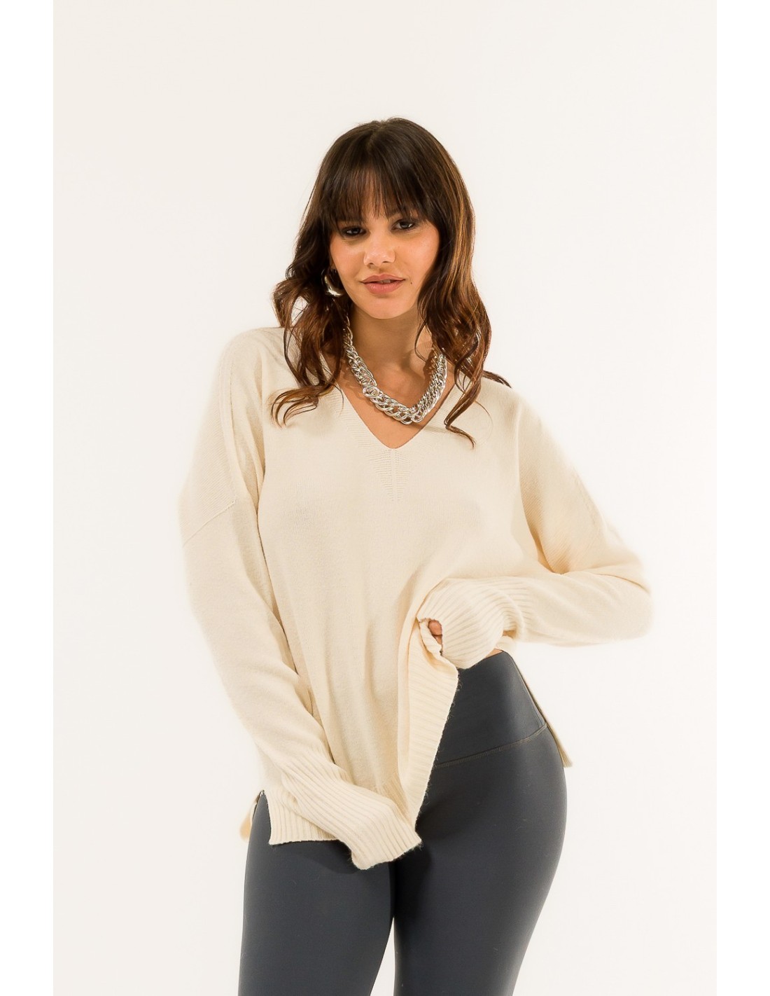 Atraente e requintada, esta camisola com um corte suave e decote em V oferece uma elegância sem esforço. Perfeita para realçar qualquer conjunto, confere conforto e estilo a qualquer ocasião, valorizando a sua feminilidade com um toque intemporal.