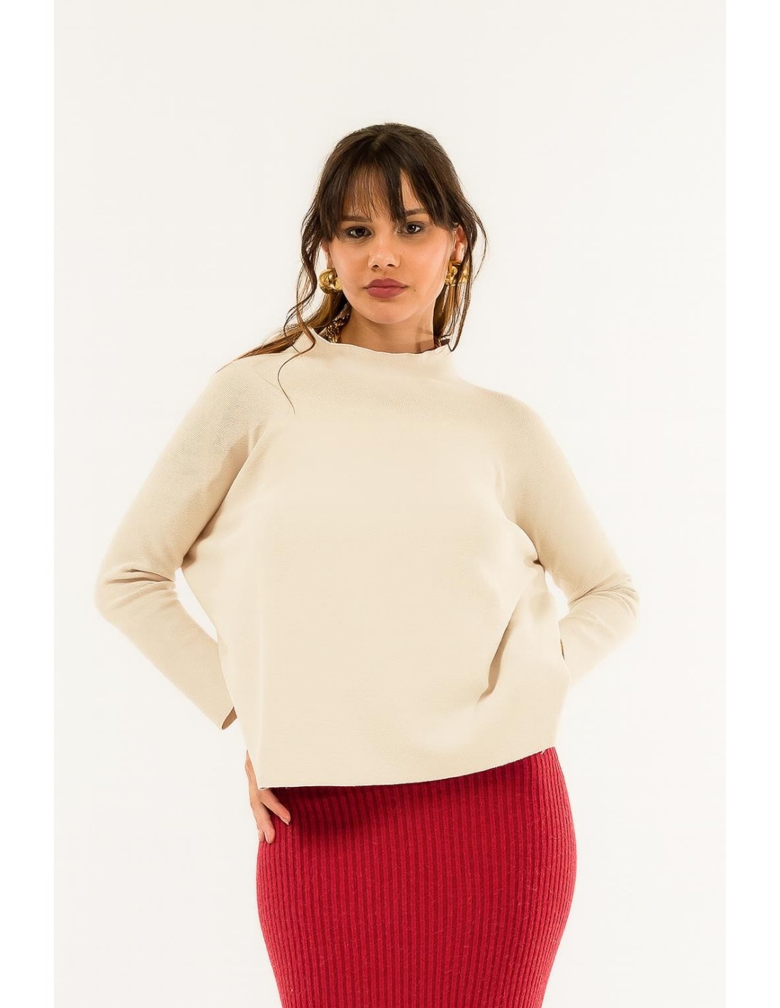 Linhas essenciais e refinadas para uma camisola que realça a feminilidade com uma elegância intemporal. A gola macia e o corte fluido tornam-na perfeita para dar um toque sofisticado a qualquer look, de manhã à noite.