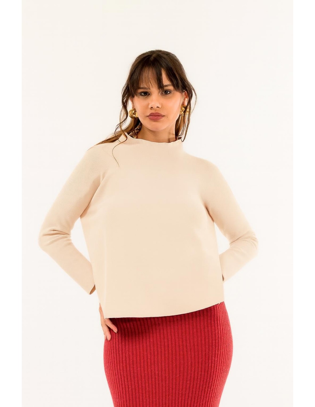 Linhas essenciais e refinadas para uma camisola que realça a feminilidade com uma elegância intemporal. A gola macia e o corte fluido tornam-na perfeita para dar um toque sofisticado a qualquer look, de manhã à noite.