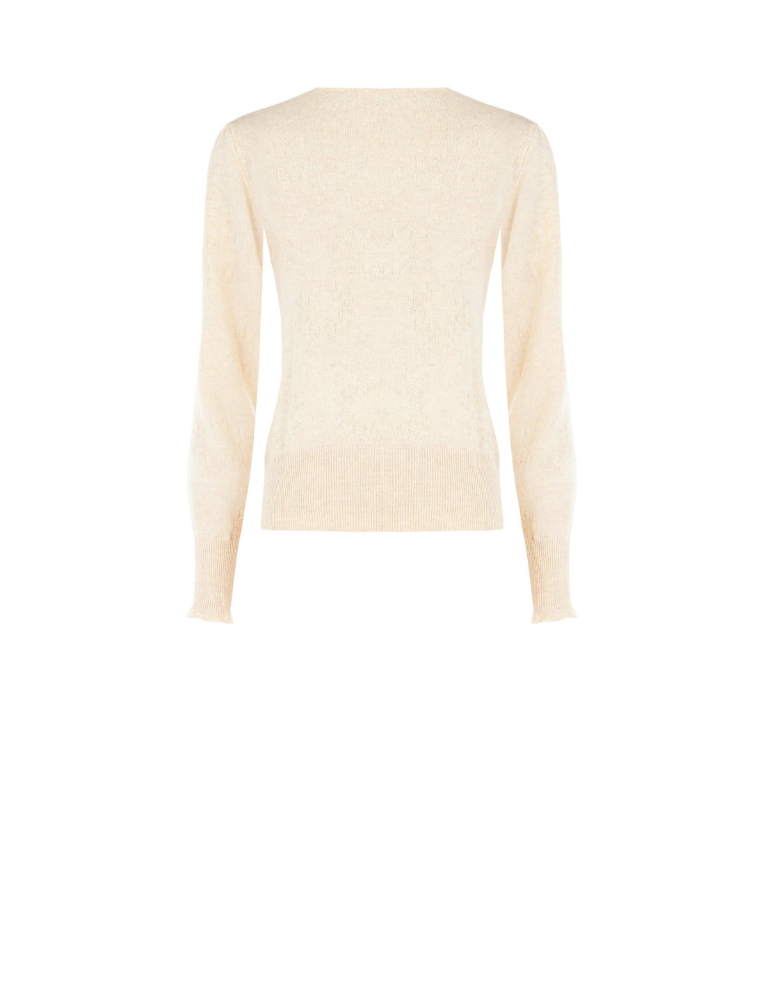 Malha leve de corte justo mas confortável, em macio misto de lã com toque suave. A trama jacquard tom sobre tom desenha o monograma, enquanto o decote redondo e as bordas caneladas definem a silhueta. Perfeita para o escritório e para o uso diário, veste-se facilmente por baixo de blazers ou casacos com extrema facilidade.